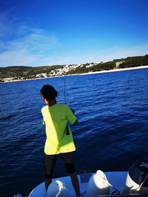 Residential tax is included in price.Welcome drink, outdoor grill, organized boat trips with a skipper. In the nearby camp, pedal boats can be rented and water slides can be enjoyed. Several excellent restaurants offering Dalmatian specialties are nearby.