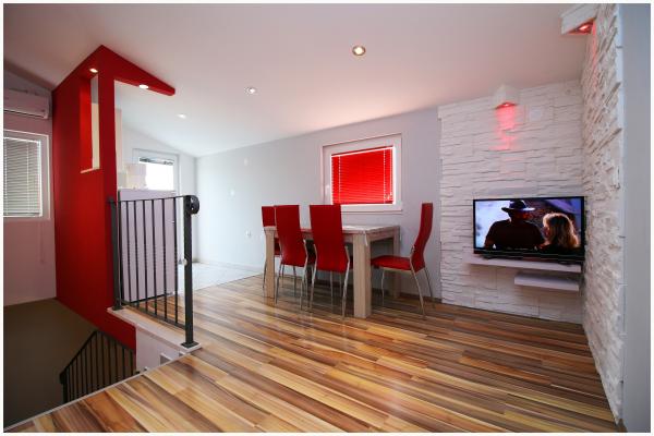 Large, spacious apartment, well equipped. Located at the end of the town, in spite of peace and quiet street. Nearby 2 fantastic, suburban beaches. But most important are the people you Huljev :) :) This year we were with them the 5th time and not the last, we feel there fantastic. I would recommend !!!