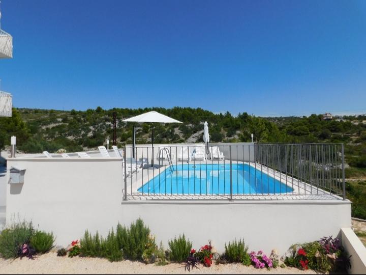 Fully equipped beautiful apartments with POOL and sunbathing area 50 m2 are located in a beautiful and quiet area of Primošten. We are located a 10-minute walk to the center along a beautiful path by the sea, a 5-minute walk to the nearest beaches where you can enjoy the sun all day with a view of the old part of Primošten and finally enjoy the sunset. The apartments have air conditioning, free WI-FI, android/smart TV, satellite, coffee machine, kettle... Bed linen and kitchen towels are changed once a week and towels (2 medium and one large per person) twice a week. The owner is available to guests 24 hours a day. In the yard there is a swimming pool, a shower, a barbecue with a dining table, a sitting area, a place for children to play... Parking spaces are right next to the building. For many years, dealing with renting apartments, we have gained experience that helps us make you feel at home. WELCOME