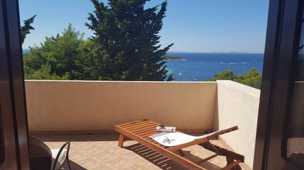 Residential tax is not included in price.Great accommodation! A clean and beautiful apartment with a view of the sea and a beautiful large terrace, which is not too hot. Mrs. Iva is a very friendly and helpful owner of the apartment, who will always come to your aid. The apartment is very close to the beach where we swim. We recommend it to everyone. Next year we will come for the fourth time.