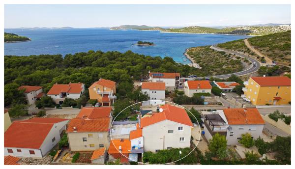 Comfortable apartments with large terraces in a quiet place Bilo, 6 km before Primošten, on the coast. Approximately 150 m from the sea and the beach. Beautiful and preserved nature with crystal clear sea.