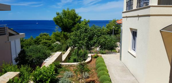 The Jambrović family apartments are located in Dolac, a small, quiet bay located three kilometers north of Primošten. The apartments are modernly equipped, with an area of up to 90 square meters, and can accommodate 4-6 people. The accommodation facility is located 500 m from the beach on a gentle slope with a beautiful view of the sea. A delivery truck with fresh bakery products and, less often, fresh fish arrives near the facility every morning.
