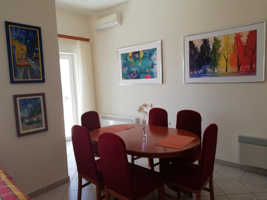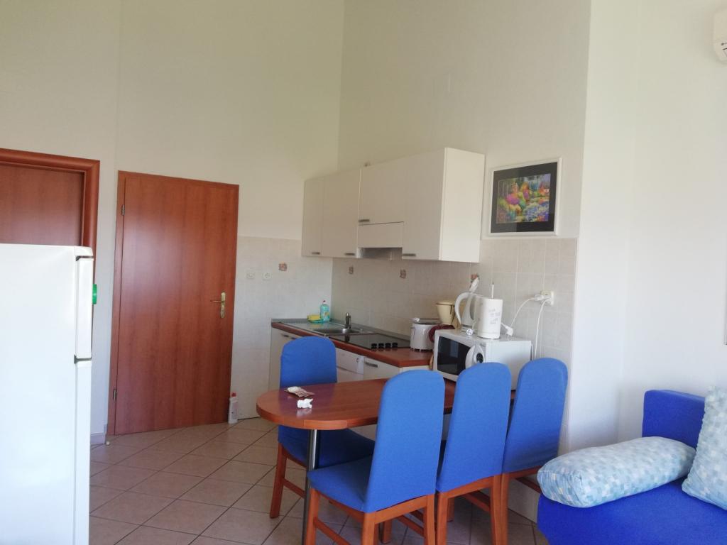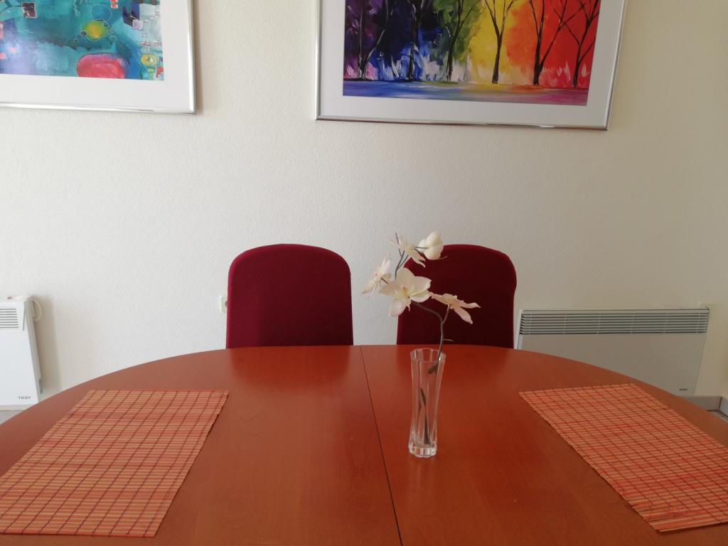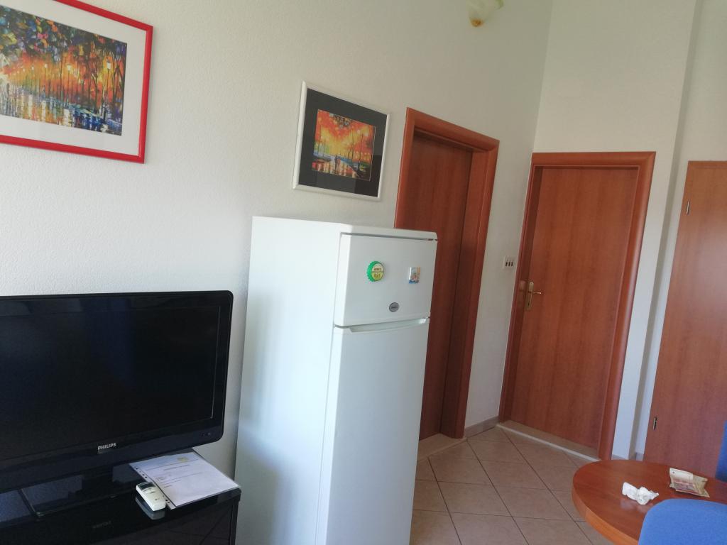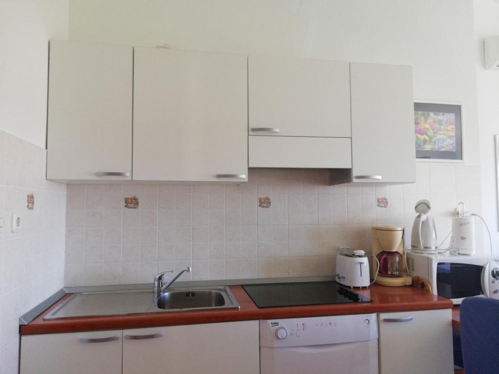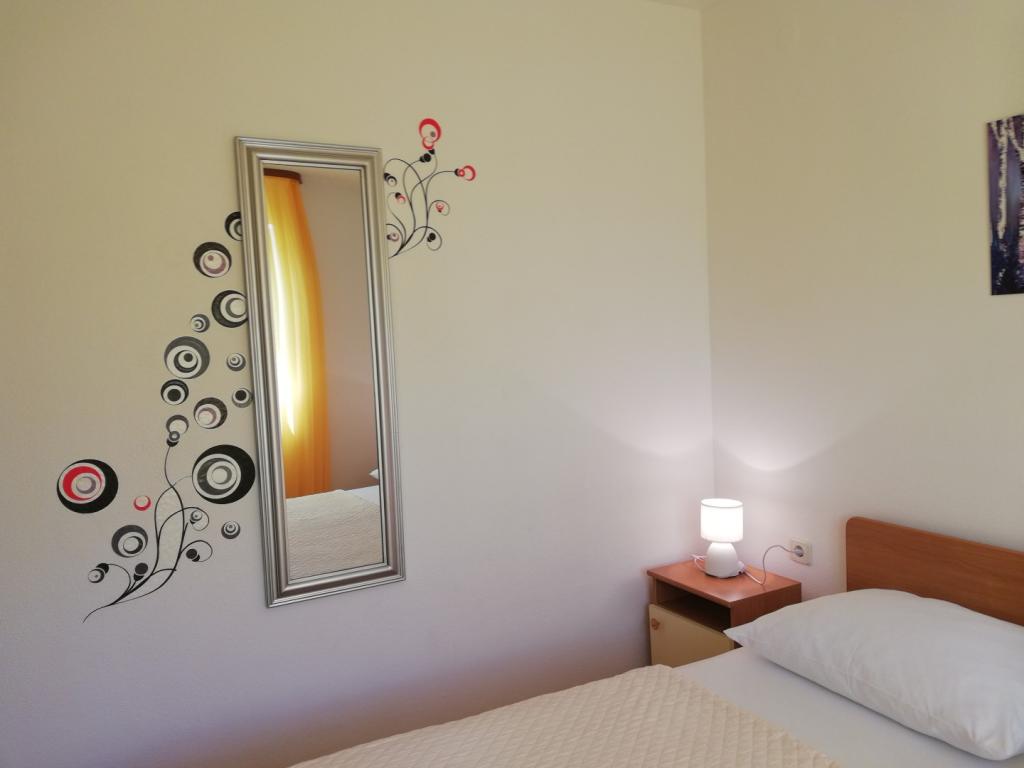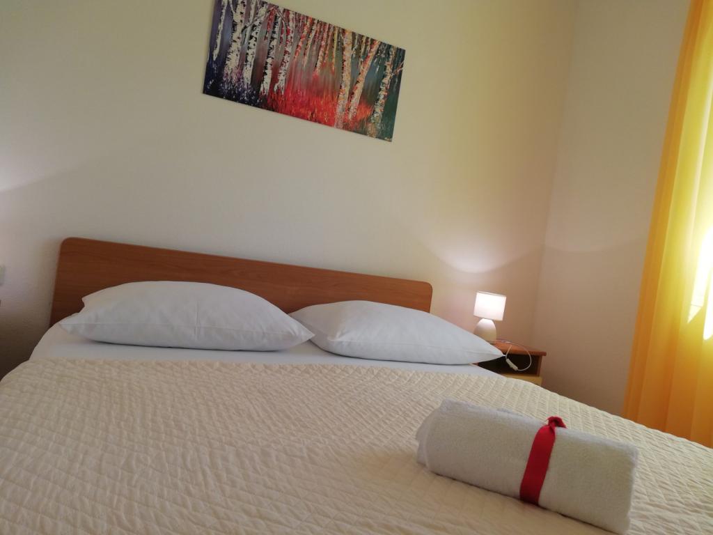 Comfortable and nicely decorated apartment, located on a small elevation above the road in the Primo puppy. The apartment and terrace offer a beautiful view of the sea and the old town. It is only 8min walk from the beach, also from the town center. The apartment consists of one bedroom for two persons, kitchen with living room, bathroom and terrace. In the living room there is a sofa bed for two people. Suitable for married couple with small children. The apartment is located on the 1st floor.