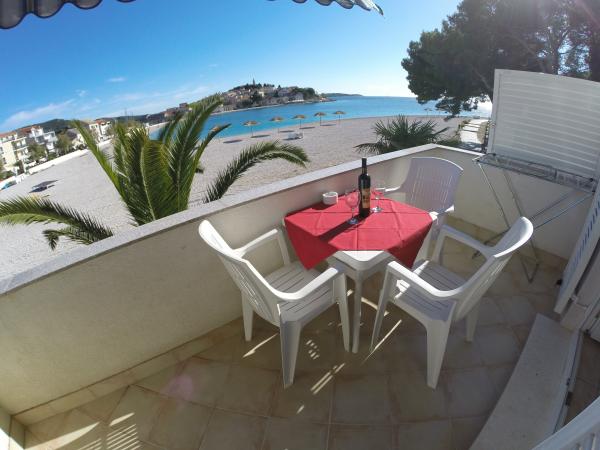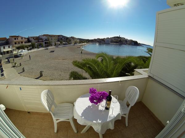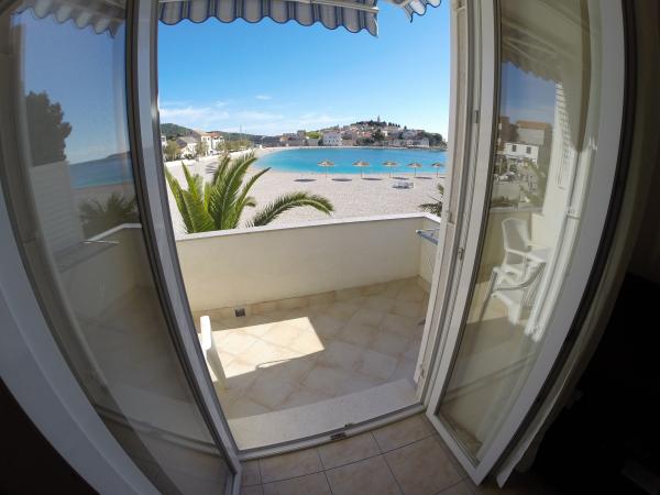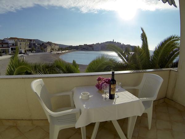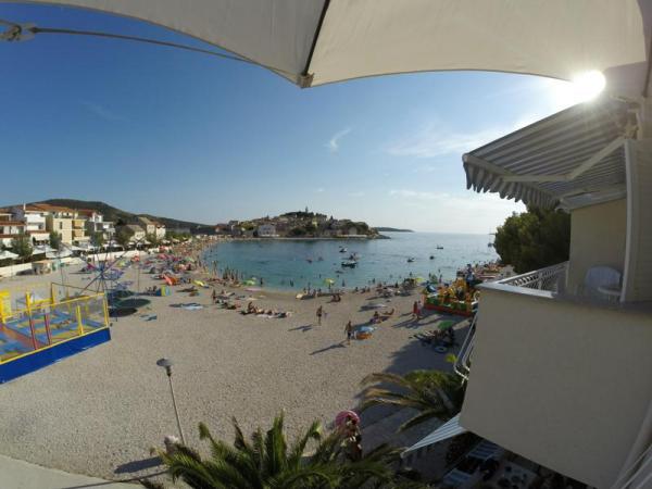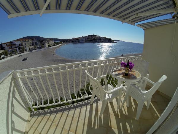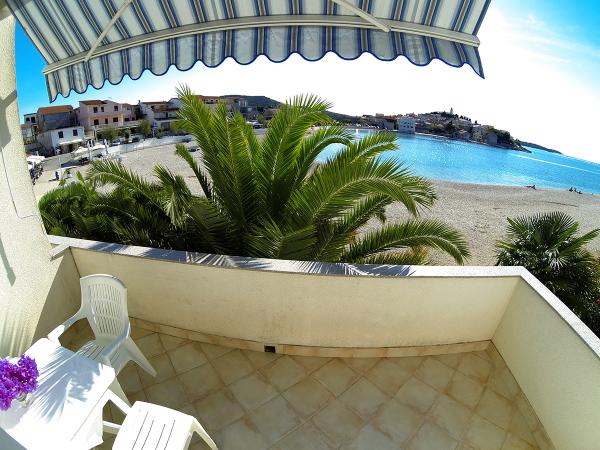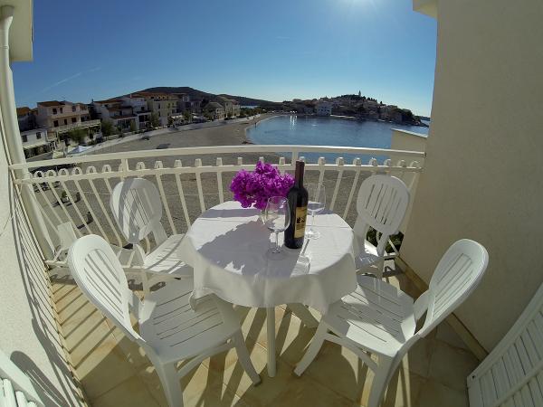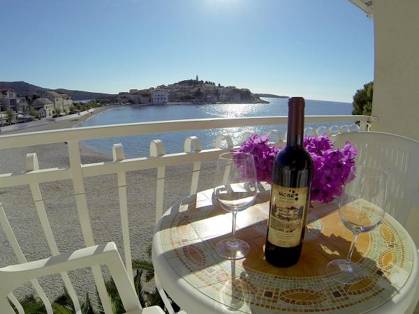 Apartments More are located in the very center of Primošten. The apartments are located on Mala Raduča beach, first row to the sea, and consist of 8 accommodation units of various capacities. In the immediate vicinity of the apartments there is a hotel complex with accompanying entertainment facilities, such as tennis courts, volleyball courts and mini golf. The apartments are also surrounded by numerous entertainment facilities suitable for children, and are located near various cafes and restaurants. A shop, post office, ATMs, exchange office and bank are all located within 100 meters from the location of the apartments. You will experience the atmosphere of summer, fun and the Mediterranean in our apartments with your whole being, accompanied by the song of the waves and the summer breeze. The Pancirov family looks forward to your arrival.