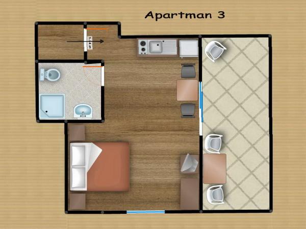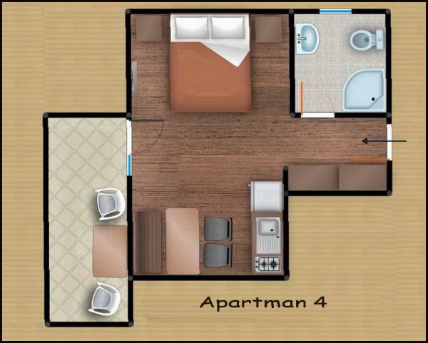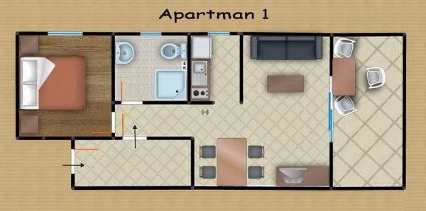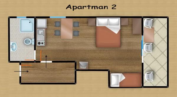 Comfortable apartments for two to three people. with terrace, air conditioning, parking and satellite TV and internet connection 400 m from the beach and sea in a quiet and relaxing environment. Included in the price: Air conditioning, Parking, WI-FI, TV, SAT, Tourist tax, bed linen, towels, dishes for preparing and consuming meals, cutlery.