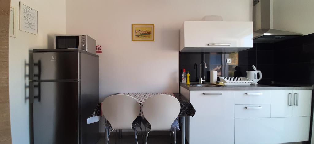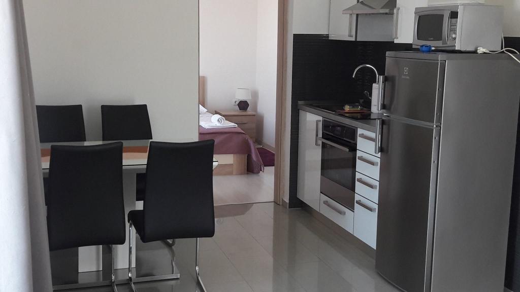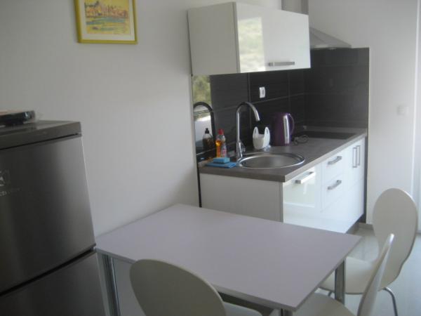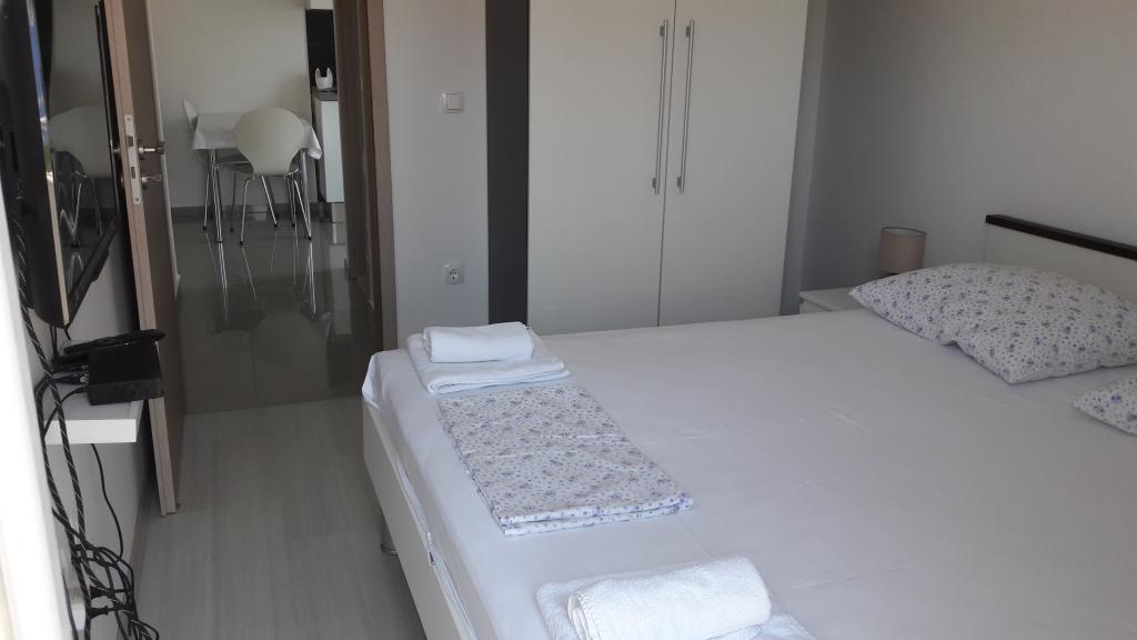 The apartment is new, very clean, well-kept, well-furnished and equipped with everything. Great location, close to 3 clean beaches and 3 restaurants, in a quiet area. The view from the apartment is fantastic - a very nice terrace. The owners are very nice, polite and helpful. We were very pleased! I recommend!