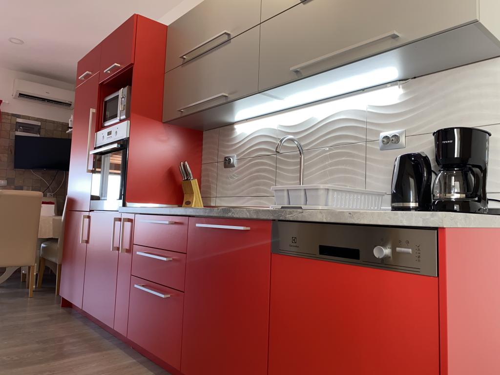 We really felt at home in the Vera apartments. The apartments are modernly decorated with everything you need and absolutely perfectly clean. The balcony offers an incredible view of the sea. The hosts in these apartments are the friendliest we have ever had. We were welcomed with finely prepared homemade salami and sausages, as well as various liqueurs and brandy. Later, they made dinner for all the guests and treated us to grilled fish and meat. And about Franja's gems, not to mention how nice they were and there were also plenty of them. We would recommend these apartments to everyone else because they are the best on the entire Adriatic. We will definitely come back next summer.