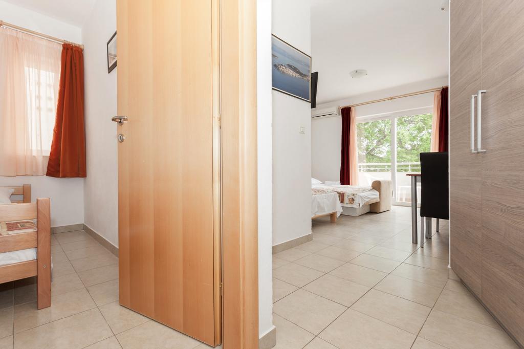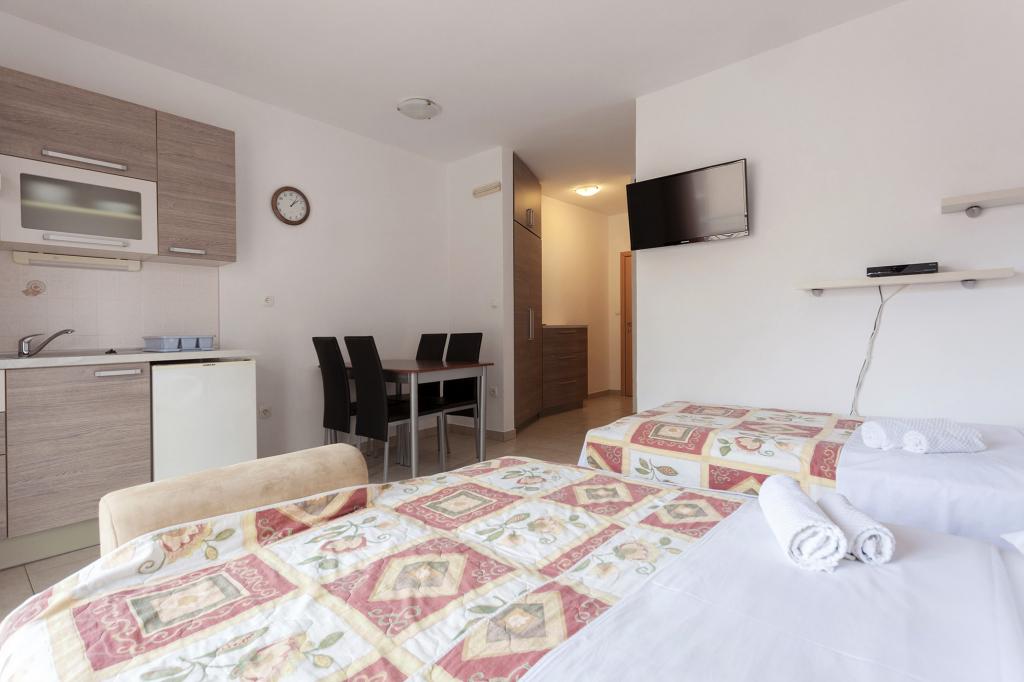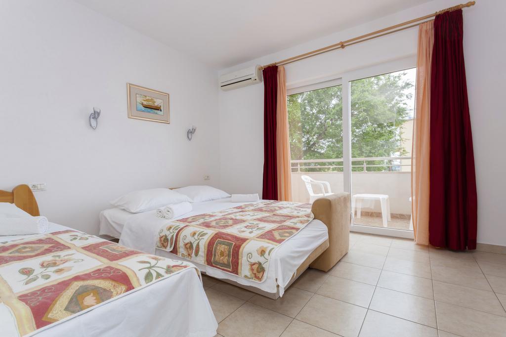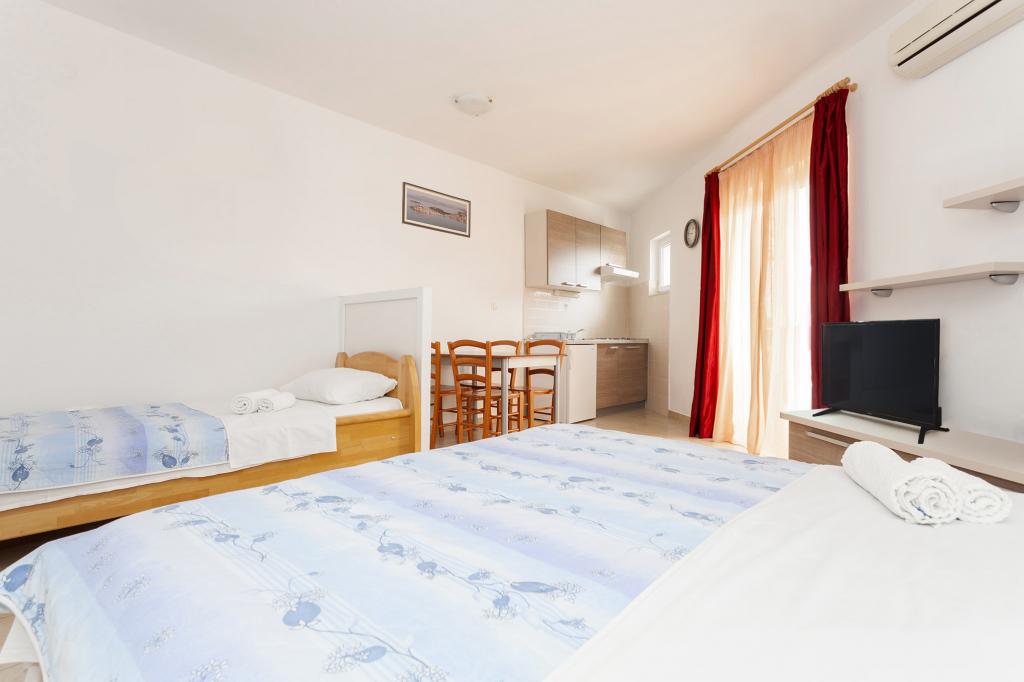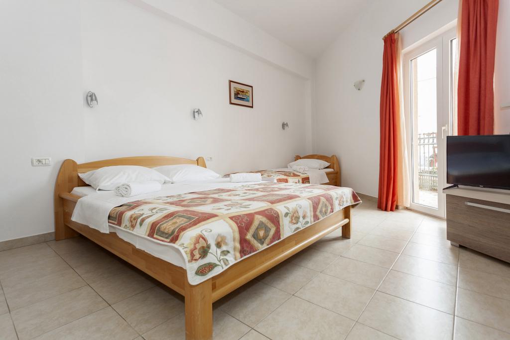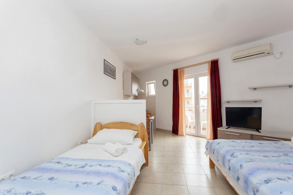The apartments are located in an ideal location because everywhere close (2 long beaches, shops, tourist information, petrol station, exchange office, pharmacy, bakery, meat) and not at the boardwalk, so there is silence in the evenings. Rooms clean, well furnished with nice furniture, large beds, lots of lockers, balokons, in the bathroom even a washer. Parking in front of the building. Of course I recommend Primosten, the beaches are very long around the headland, so even though there are plenty of people, everyone will find enough beach space for themselves. Apartments are recommended.