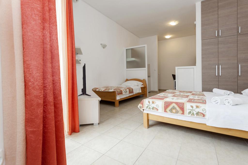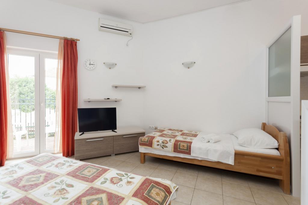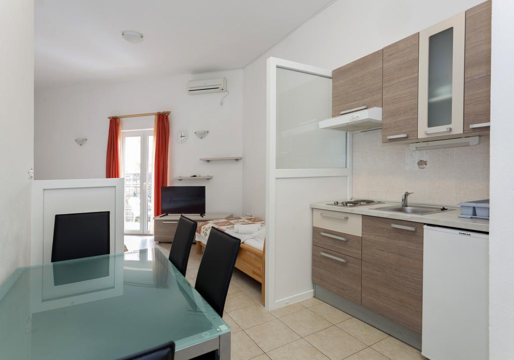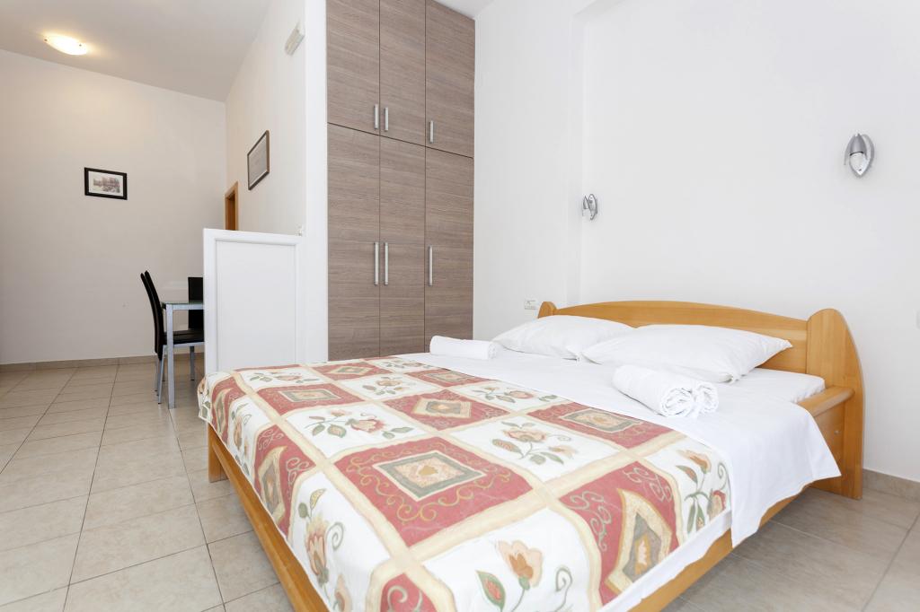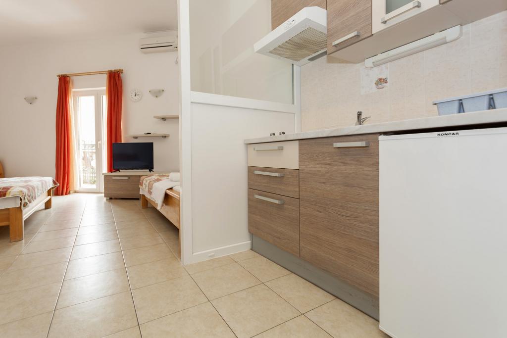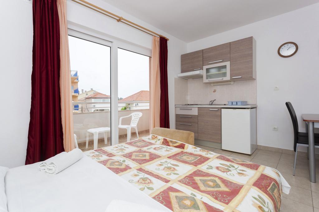 The apartments are located in an ideal location because everywhere close (2 long beaches, shops, tourist information, petrol station, exchange office, pharmacy, bakery, meat) and not at the boardwalk, so there is silence in the evenings. Rooms clean, well furnished with nice furniture, large beds, lots of lockers, balokons, in the bathroom even a washer. Parking in front of the building. Of course I recommend Primosten, the beaches are very long around the headland, so even though there are plenty of people, everyone will find enough beach space for themselves. Apartments are recommended.