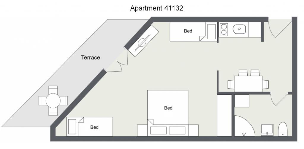 The apartment is located on the ground floor. Positively: location, spacious rooms, modern furniture, neatness and cleanliness, the house functions like an apartment building so owners practically do not encounter during your stay. Remarks: modest furniture on the outdoor terrace, disorganization of the environment in front of the terrace (public space), the flooring on the beds should be changed Overall rating: Very good