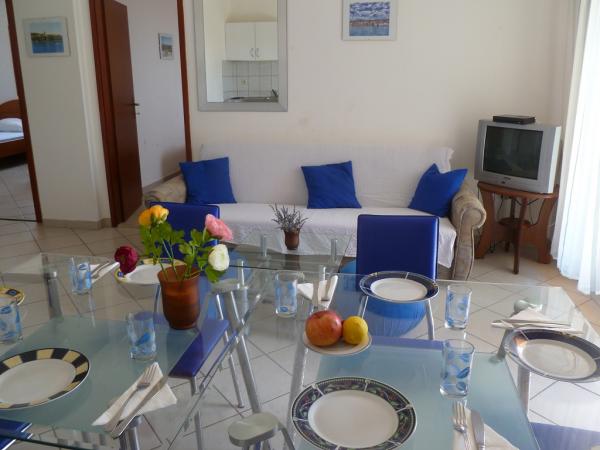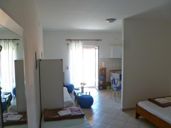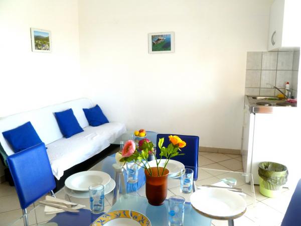 The apartment was clean and tidy, the view from the terrace indescribable, in the morning coffee with such a view, truly magical. The boss and his brother are very accommodating, nice people. Close to the sea, the center, the beach, shops, pharmacies, everything is at your fingertips. I think that for such an affordable price, considering the proximity and the view from the terrace that is coming down, it is really worth coming. We will definitely come again!