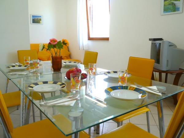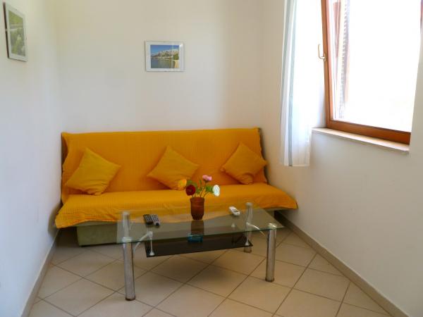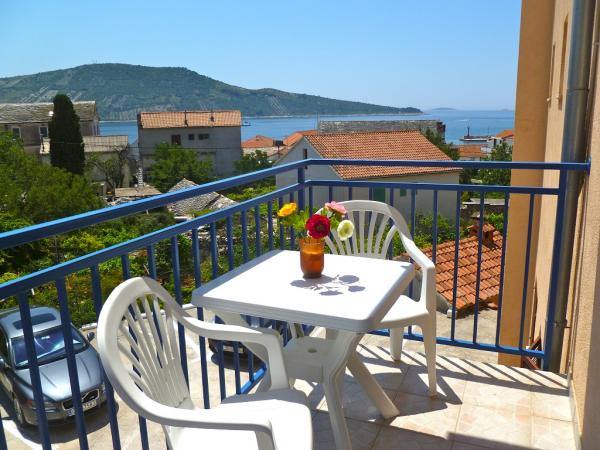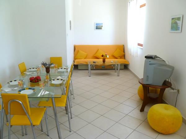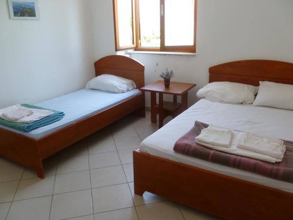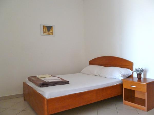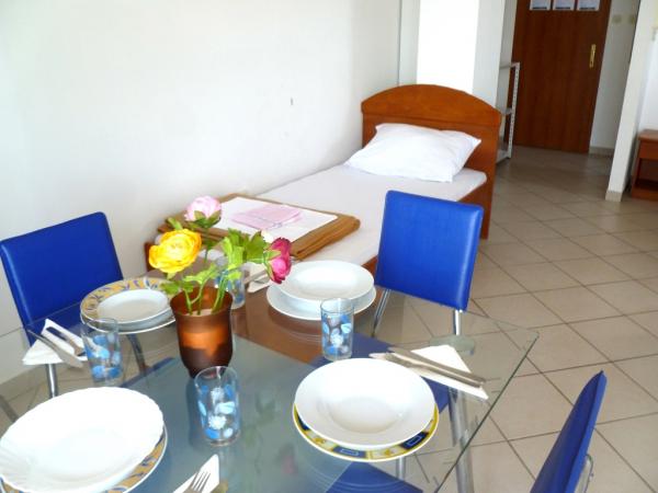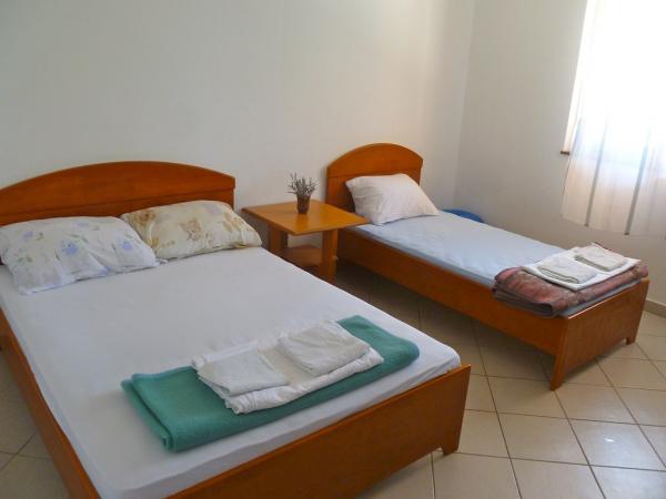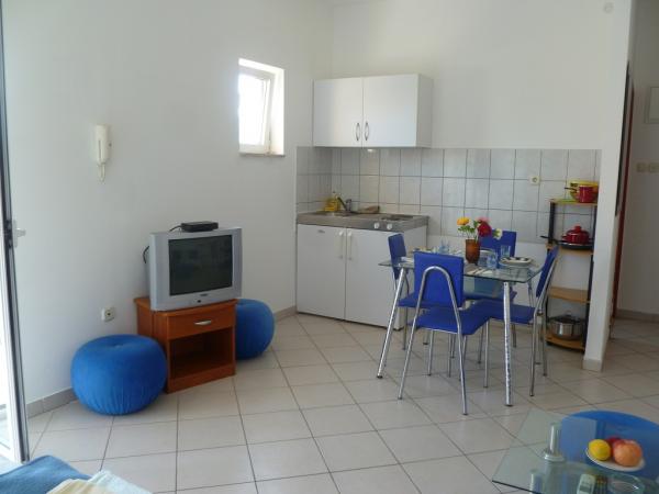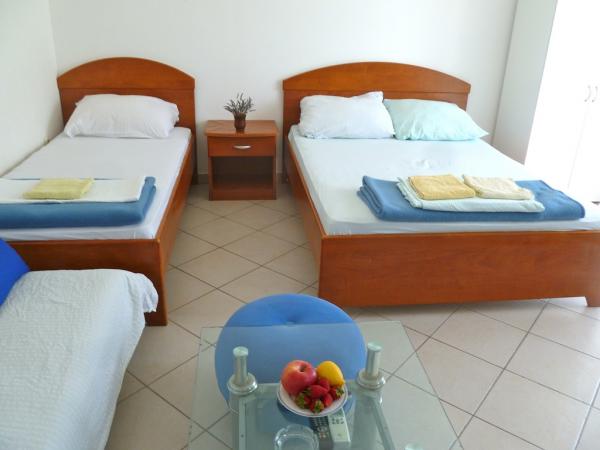 Villa Maria is in centre of Primosten, 50 - 100 meters away from beautiful beaches (pebbles, sandy and rocky). On the top of apartments is big terrace with beautiful panoramic view of Primosten and beaches. Villa has eight studio apartments, two two-rooms apartments. They are all modern style and have three stars that guarantee comfort and happy vacation. Apartments have air condition, mini kitchen, refrigerator, satellite TV and view on sea. Studio apartments have three beds + additional, two big apartments have five, six beds + two additional. All apartments have they parking space. Grocery store, post office, bank, bakery and shops are all 100 meters away from apartments.