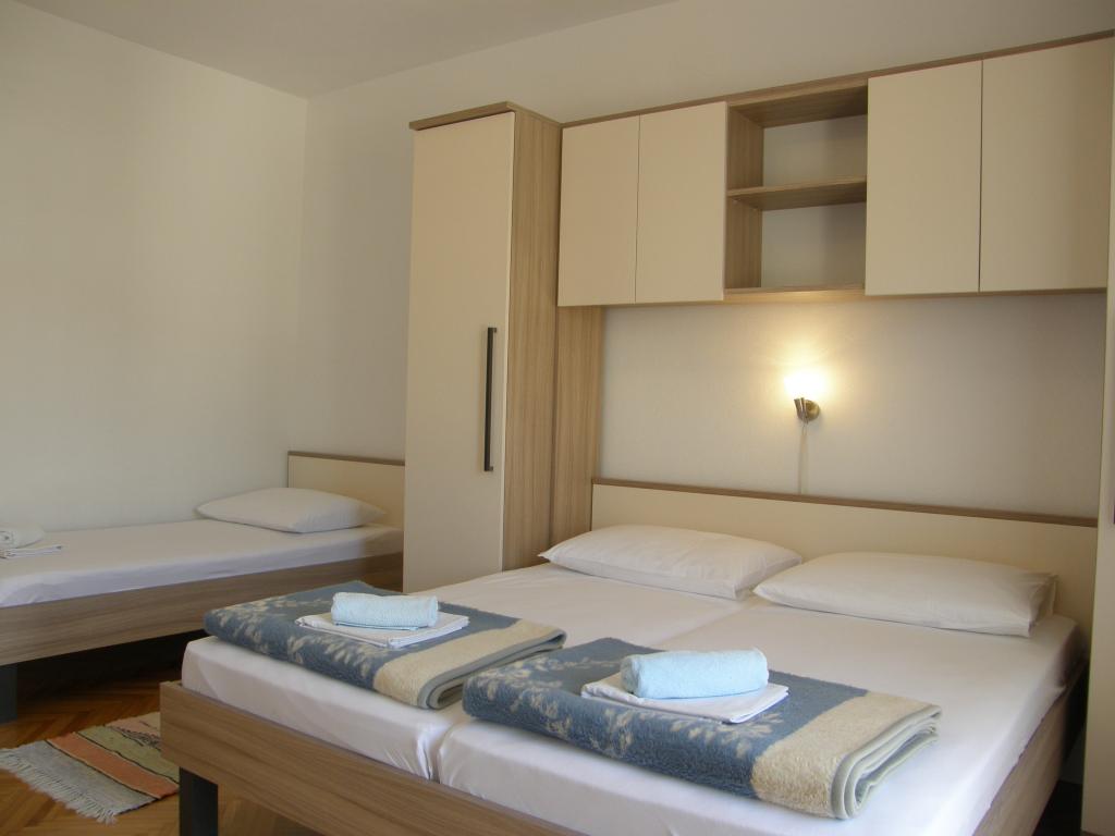 Apartments Zdravka are located about 10 minutes walk from the center, the sea and the beach. They are air-conditioned and have free wifi. Suitable for accommodating several families because they consist of three apartments: on the ground floor there is a small studio for 2 people. The studio has air conditioning, wifi, dishwasher, washing machine and a small terrace for relaxing. On the first and second floors there are apartments for 5 people, each with two bedrooms, kitchen and dining room, bathroom and toilet. Each apartment has air conditioning, wifi, satellite TV and a nice balcony with a sea view. Behind the house there is free parking for 1 car per apartment.