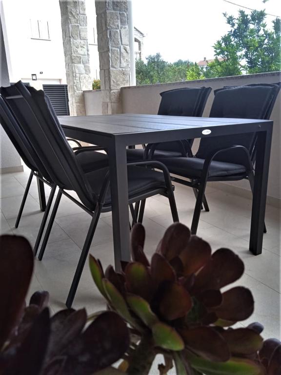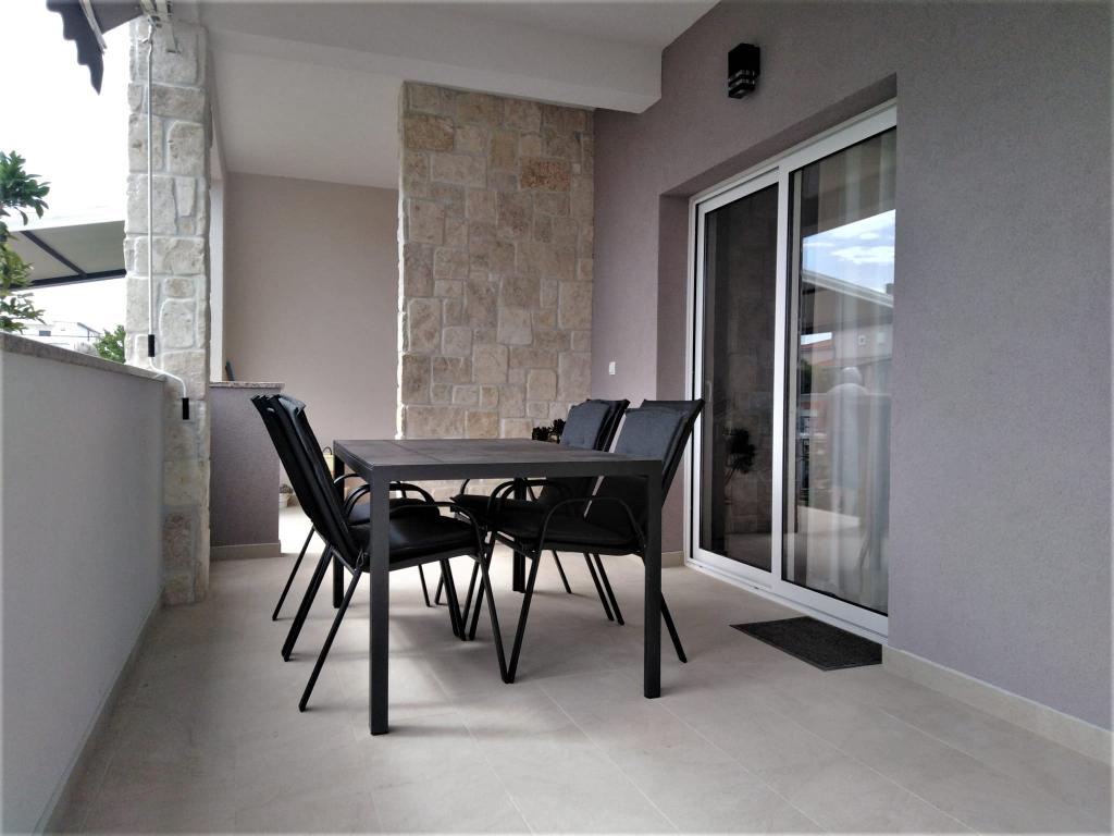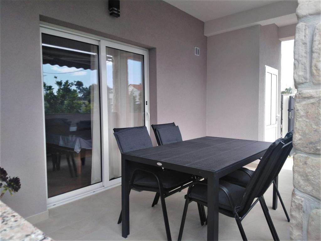 Apartment ALEN (40 m2) is located on the ground floor of a private, detached house surrounded by a garden. It consists of 1 large bedroom (20m2) with double bed, extra bed and cot, kitchen with living room with sofa bed 135 x 190 cm, bathroom with toilet and a beautiful covered terrace of 12 m2 in front of the apartment . It is brand new and equipped with everything you need for a pleasant holiday: air conditioning, WI-FI Internet, SAT-TV, microwave, kettle, toaster, coffee maker, grill. The price includes: bed linen, towels, kitchen towels (changed every 7 days), electricity, water, WiFi Internet, and tourist tax. The apartment is positioned 300 m from the beautiful sandy beach and 100 m from the supermarket.