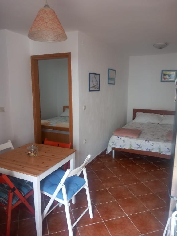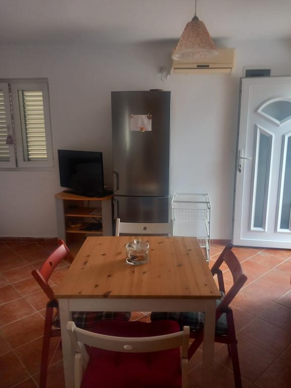 Apartment of 37 square meters in Privlaka. It consists of two rooms: a bedroom with a double bed and a room that includes a living room (with another large bed) and a kitchen/dining room. The bathroom has a toilet and a shower. Air conditioning and a TV are in the living room. The apartment has a yard with a table and chairs, a large awning, an outdoor shower and a barbecue. The nearest beach is 100 meters away, the entrance is sandy, suitable even for the smallest children, and next to the beach there is a children's park, with equipment and a volleyball court. Along the promenade there are numerous beaches adapted to children's needs and one completely sandy. The apartment is five minutes away from a shop, post office, bakery and pharmacy. Nearby are Zadar (18 km from Privlaka), Nin (5 km), Zaton (6 km) and numerous facilities for children and adults. The apartment has wi-fi. We offer 3 bicycles for adults.