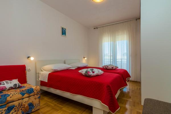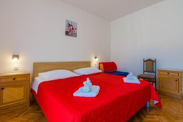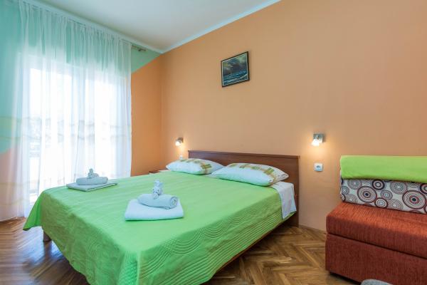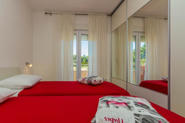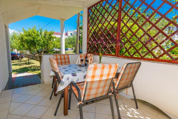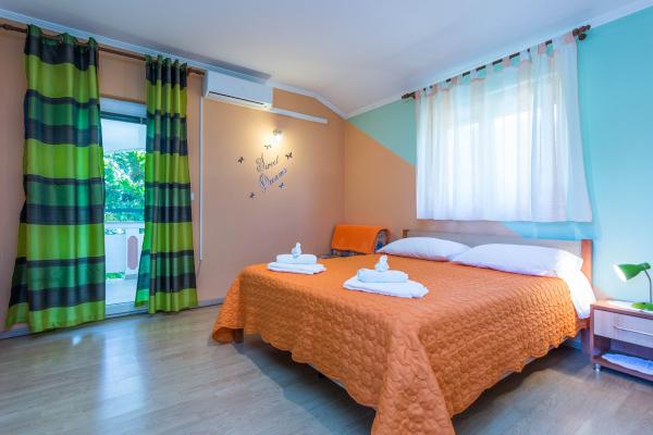 Fully equipped apartments in a quiet area of Privlaka, located 300 m from the sea, with a large yard. The apartments have two large bedrooms, bathroom, kitchen, large terrace and balcony. In front of the house is a pine forest, near the bus station.