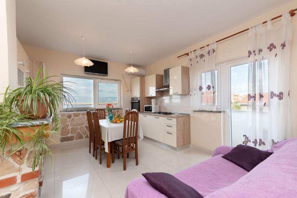 The accommodation is beautiful, with a terrace, an oasis of peace and relaxation. The hosts are cordial, helpful, caring for their guests. The yard is large and for the use of figs, vegetables from the garden! Amazed. Sandy beach below the house. For children, there is a trampoline, swings... you can freely use the observation deck that offers a view of the sea and the island of Vir. All in all very satisfied. August, 2023.