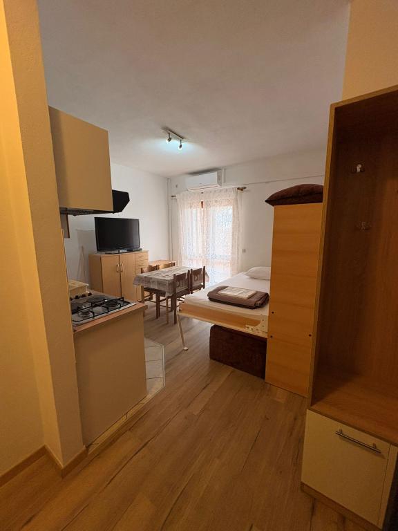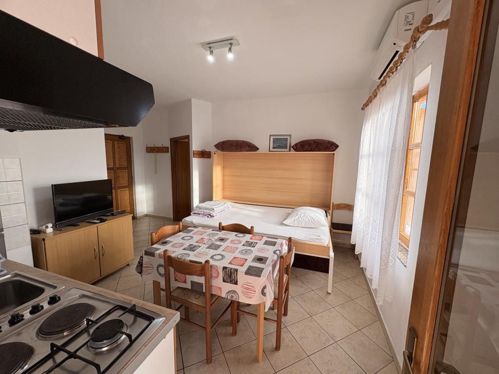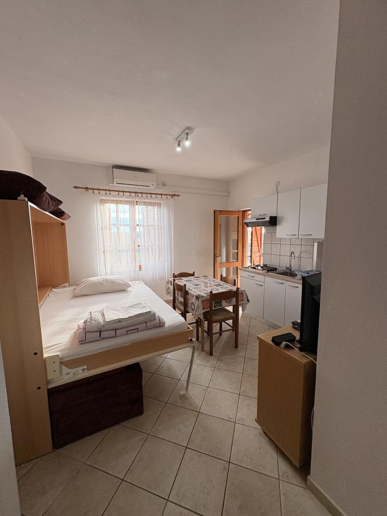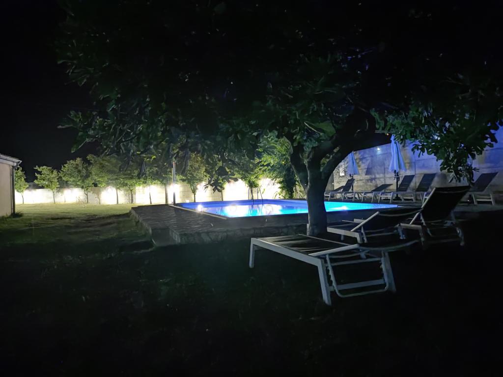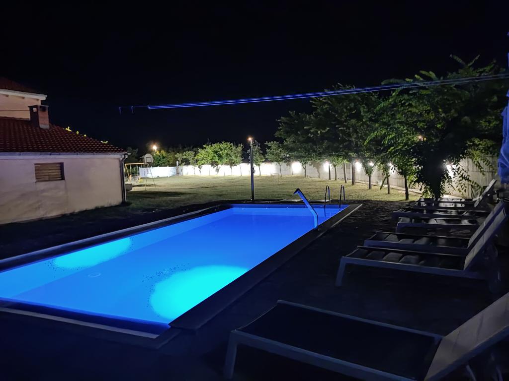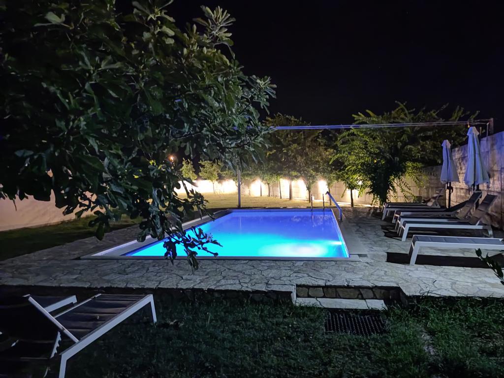 In our yard we have arranged and reserved one hard covered parking space for each apartment. We also have parking spaces for several cars per apartment. In the auxiliary building, guests have access to a tavern for socializing and preparing food with the necessary dining equipment. The swimming pool is overflowing on two sides and equipped with two types of water massages and is available to guests from 0800 to 2200 hours. Sun loungers and parasols are included in the price of the apartment. A fixed canopy with a length of 12m provides safe protection from the sun. Two exercise machines are available to guests from 0800 to 2200 hours and are included in the price of the apartment. The washing machine is located in the auxiliary building and is available to guests from 0800-2200 hours and is included in the price of the apartment. The hosts are always available and willing to help with preparing food from the grill.