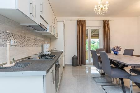 If you are looking for accommodation to relax from the noise and everyday stress, you have come to the right place. A house on the outskirts of Privlaka, The owner was very friendly and nice. What we really liked was the large terrace where we enjoyed spending time. What's negative about the house! Air conditioning is far too weak, it's just enough for the living room and so the other rooms don't get anything. Internet is also far too weak, as soon as a second device is connected to the WLAN you need a lot of patience to be able to open something. I spoke to the owner and the answer was "it's normal in summer" During the 14 days of our stay, we were not offered a change of bed linen or towels, as is usual in the other houses. What also made us sad was that there was no decent beach nearby, we had to drive and they charged 4-5 euros for parking everywhere. There is no bakery nearby either, so you would have to drive everywhere. But we made the best of our vacation and wish everyone else could too!!!