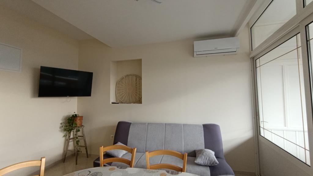 The house is located second row to the sea, in a quiet residential area. All apartments have balconies with a direct view of the sea. There is also a sports field and a children's park in the immediate vicinity.