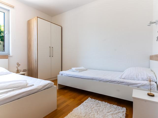 My Nest Accomodation is located in a quiet part of Privlaka (Glavanci), 600m from the first beach and 800m from Bilotinjak beach, one of the most beautiful sandy beaches in this part of Dalmatia. We offer private parking in front of each apartment and a unique shared courtyard with a shared kitchen and barbecue, terrace, 100m2 swimming pool, sundeck by the pool, jacuzzi, sauna with the scents of the Mediterranean garden. Each apartment has a living room, fully equipped kitchen, two bedrooms and bathroom and a terrace or balcony. We are only 12 km from Zadar, and the historic town of Nin is only 3km away. We are in an ideal location if you want to visit the Kornati Islands, Krka National Park, Plitvice Lakes National Park, Pag, Ugljan and many other attractions, and still enjoy the complete peace of an authentic Dalmatian town.