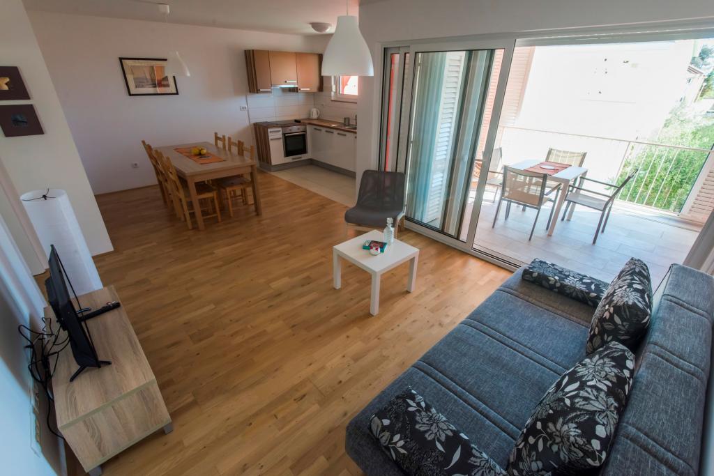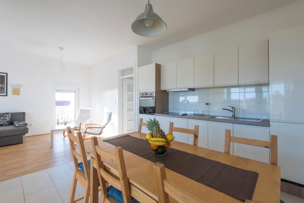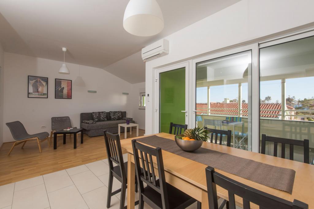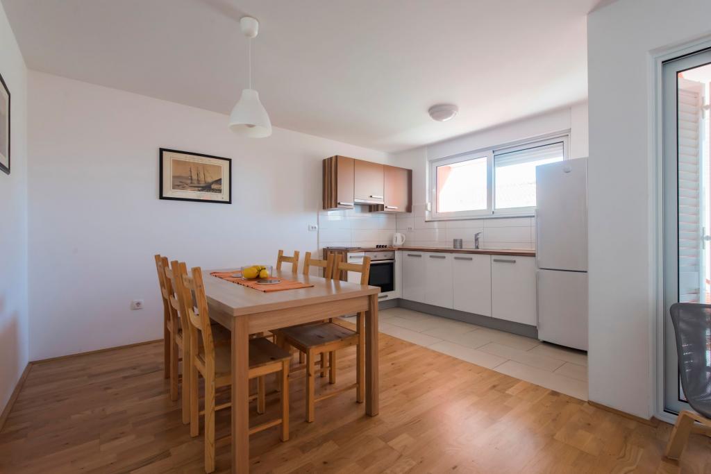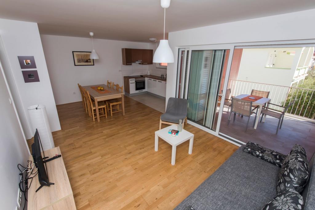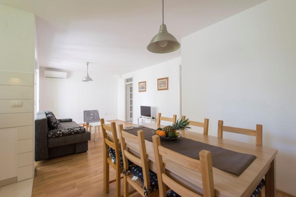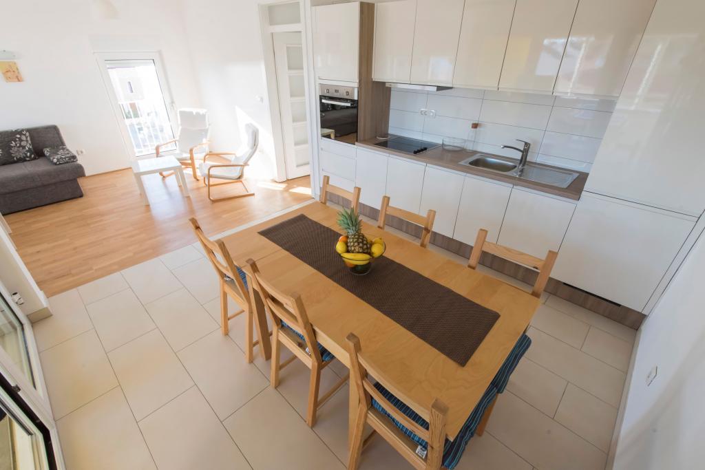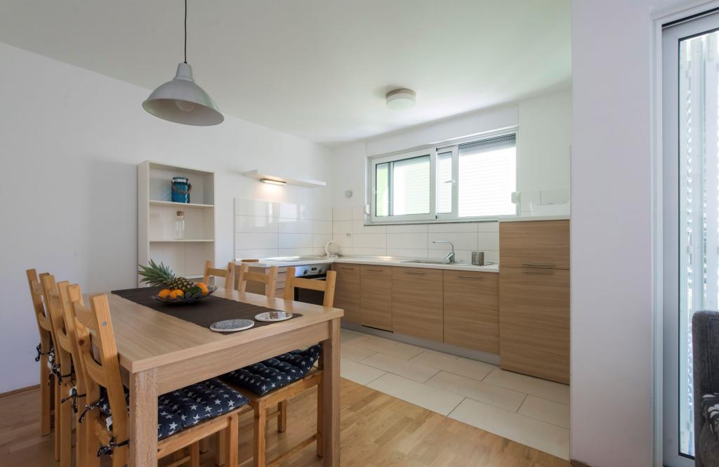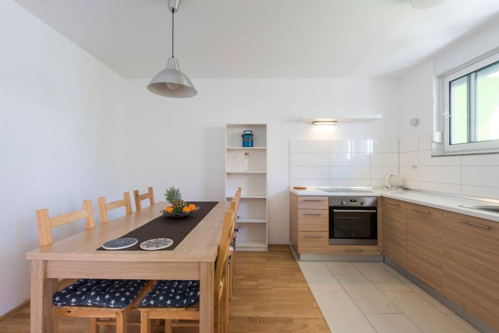 Apartments Punta II have several two-room apartments and 1 three-room apartment, all newly and modernly furnished, located 50 meters from the sea and the beach. Two-room apartments are about 70 m2 in size, while three-room apartments are about 80 m2. All apartments have air conditioning in the living room, modern kitchens with dishwashers, glass ceramic plates, ovens and large refrigerators and freezers. There is a pull-out couch in the living room. All apartments have a bathroom (with shower), a separate toilet and a large terrace of about 10 m2 and a parking space. Some apartments are also equipped with a washing machine. Most apartments have a view of the sea. Apartments on the ground floor have their own fenced garden.