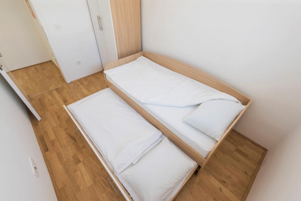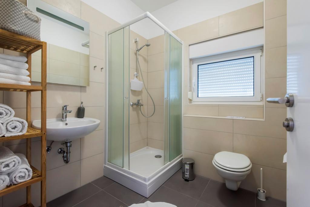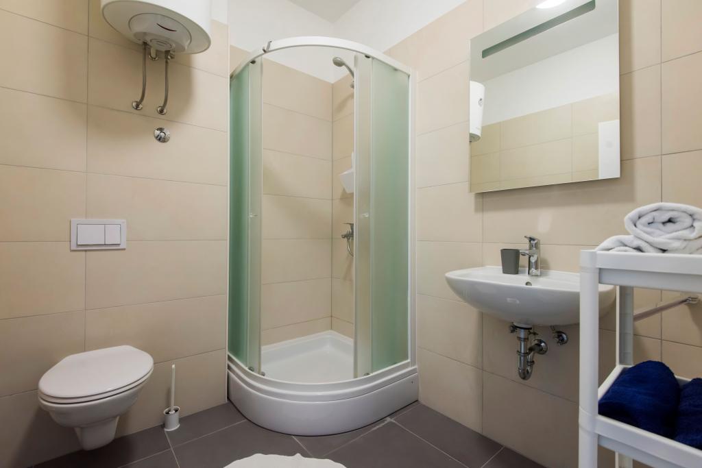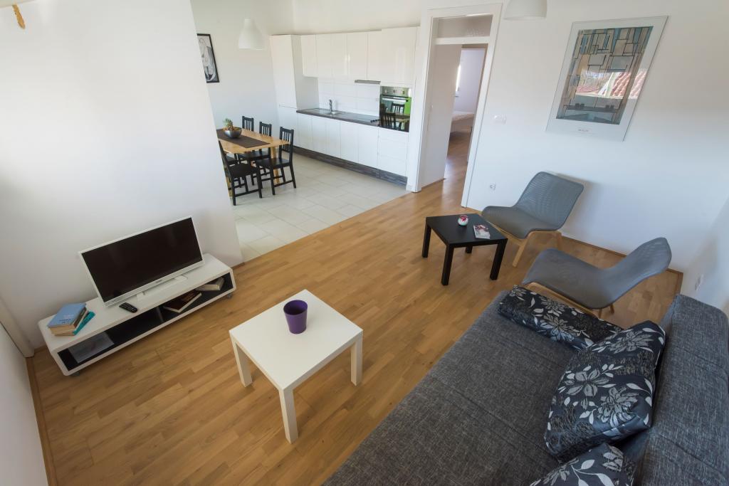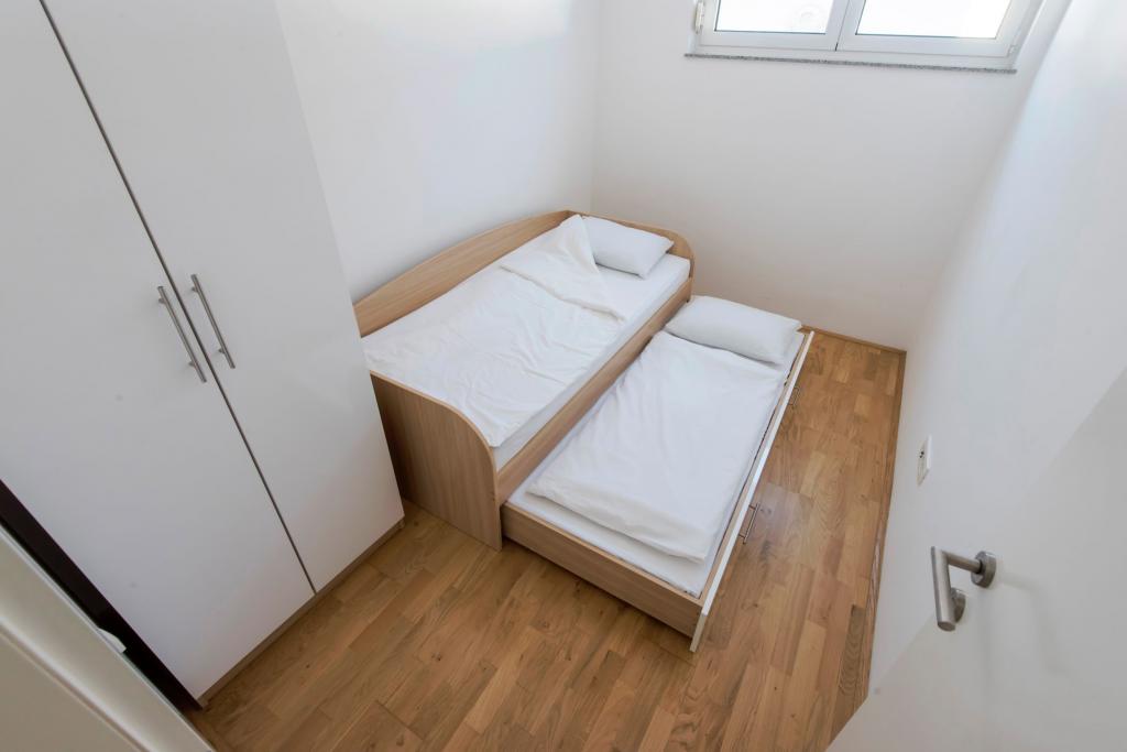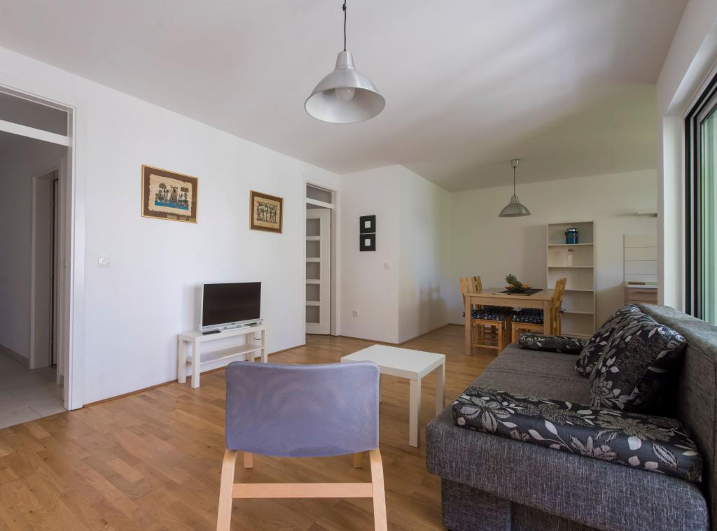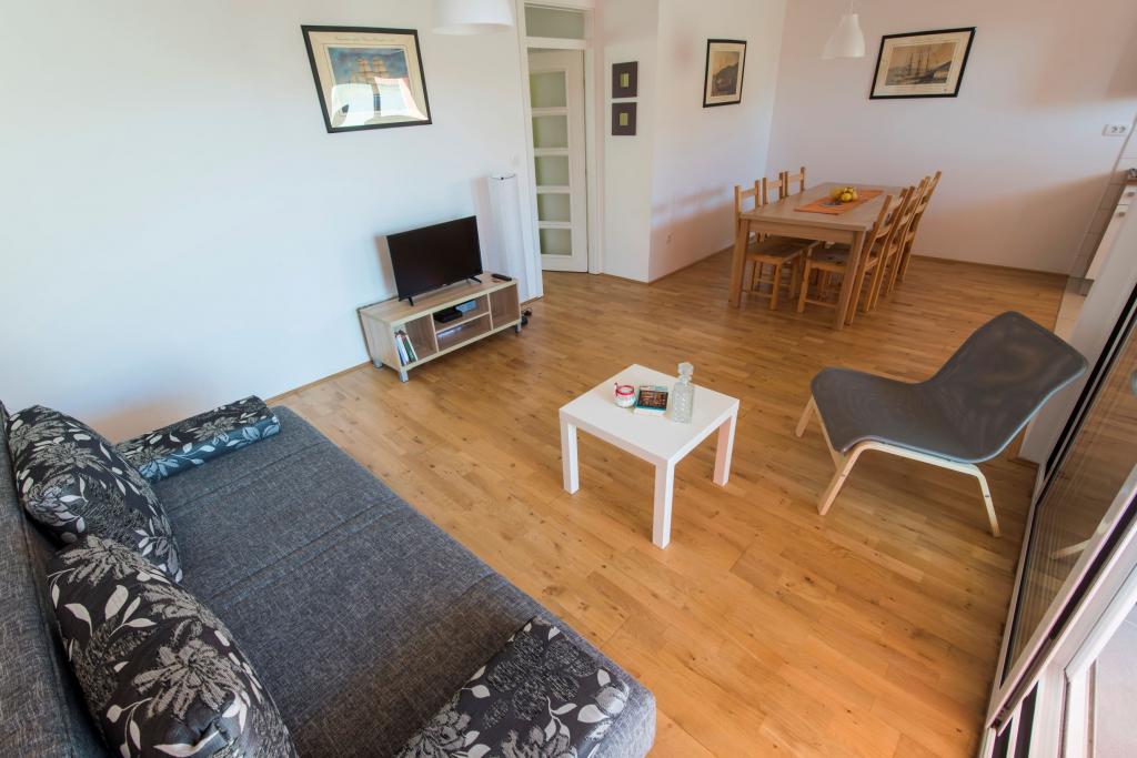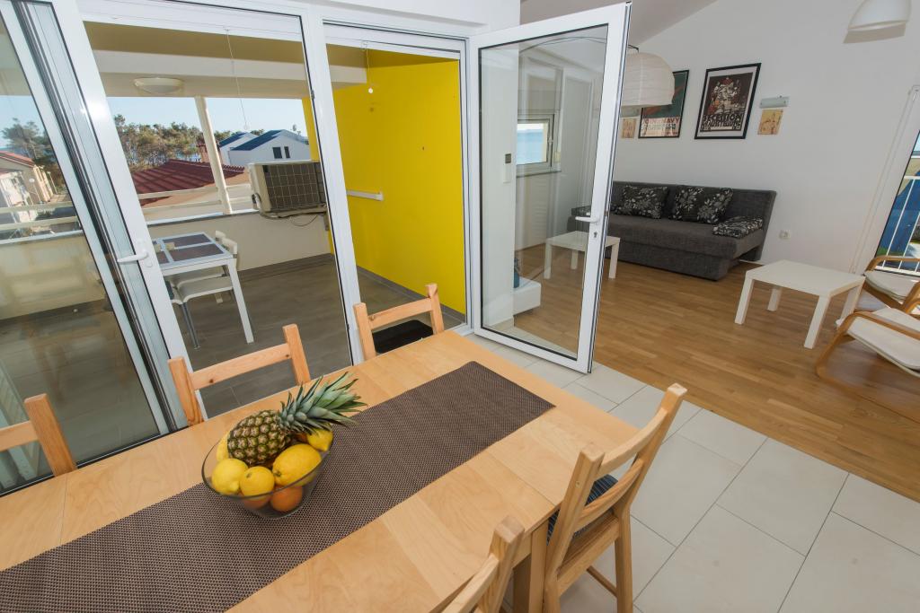 Apartments Punta II have several two-room apartments and 1 three-room apartment, all newly and modernly furnished, located 50 meters from the sea and the beach. Two-room apartments are about 70 m2 in size, while three-room apartments are about 80 m2. All apartments have air conditioning in the living room, modern kitchens with dishwashers, glass ceramic plates, ovens and large refrigerators and freezers. There is a pull-out couch in the living room. All apartments have a bathroom (with shower), a separate toilet and a large terrace of about 10 m2 and a parking space. Some apartments are also equipped with a washing machine. Most apartments have a view of the sea. Apartments on the ground floor have their own fenced garden.