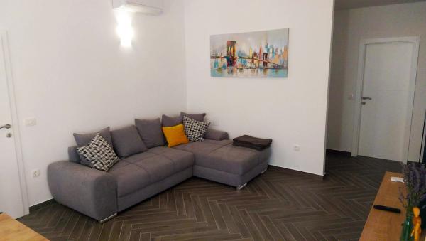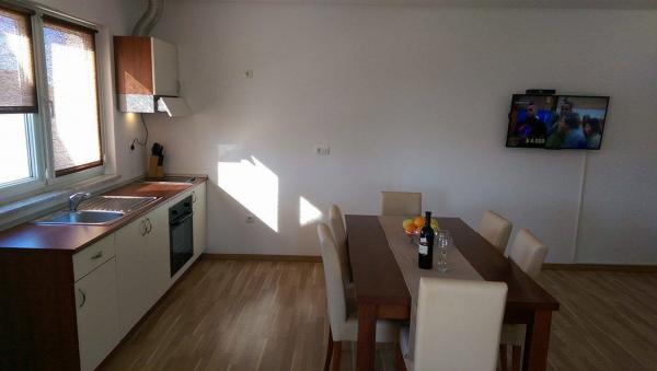 Apartment is located in Privlaka, tourist town 20 km far from centar of Zadar. The apartment consists of bedroom, kitchen, bathroom and a large spacious terrace, garden with barbecue, children\s playground and a swimming pool 40 m2.