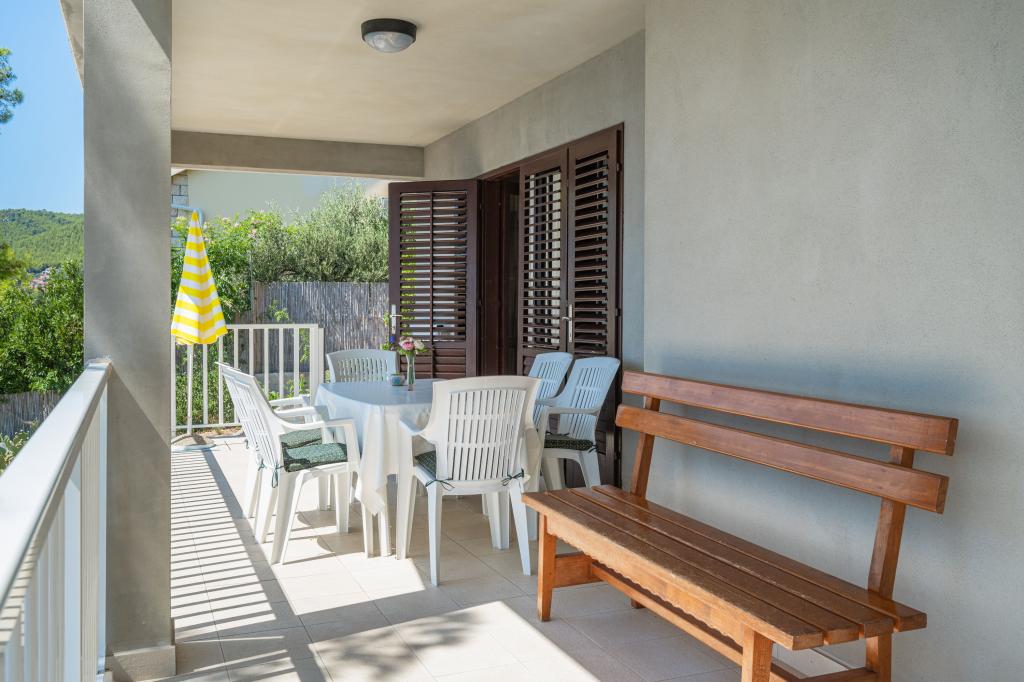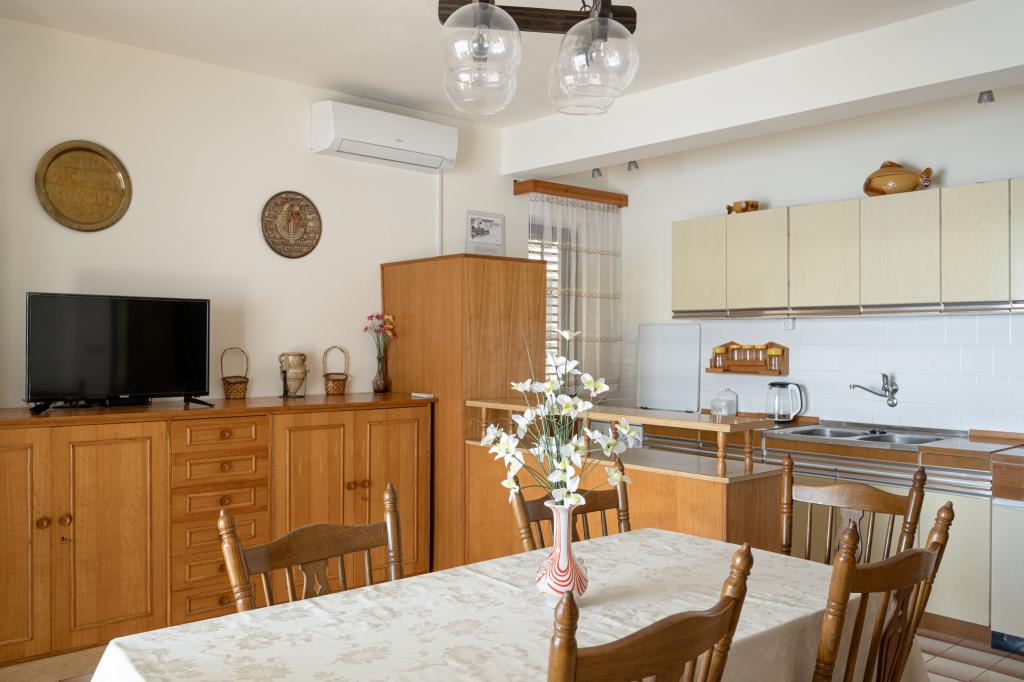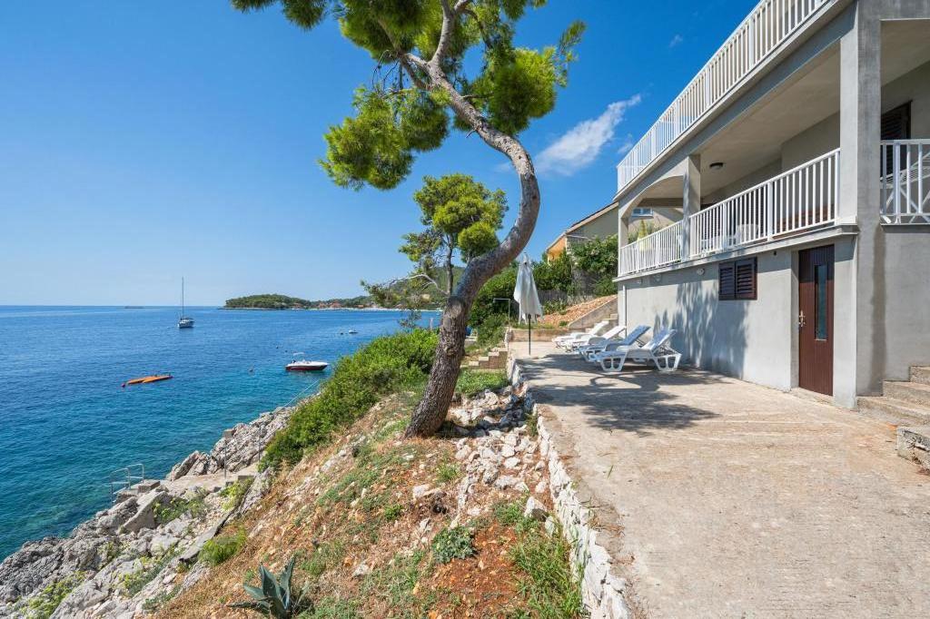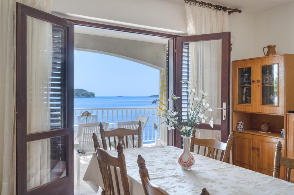 Apartment Branka is located in the southwestern part of the island of Korčula in the beautiful bay of Prižba with a view of the sea and small islands nearby. It has access to the beach, as well as parking and a large terrace. The apartment is designed for 6 people, has three bedrooms, a kitchen, a living room and a toilet. About 500 meters west there is a pebble beach with various amenities such as a beach bar, a sailing school, jet ski and small boat rentals. Prižba also has restaurants and a diving center.