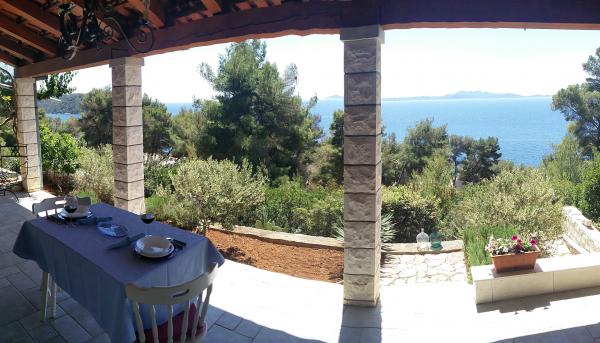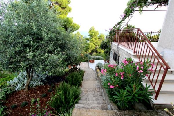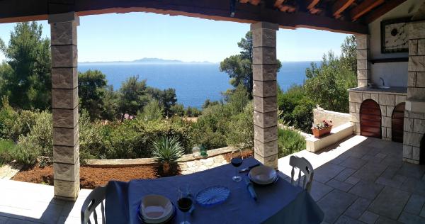 Apartments Ana are located in Prižba in the village of Vinačac in a pine forest, in a very peaceful environment. The apartments have a wonderful view of the open sea and islands. The surroundings of the house are beautifully decorated. Access to the house is via a concrete staircase. It consists of two new apartments for a relaxing holiday in nature. The beach is below the house.