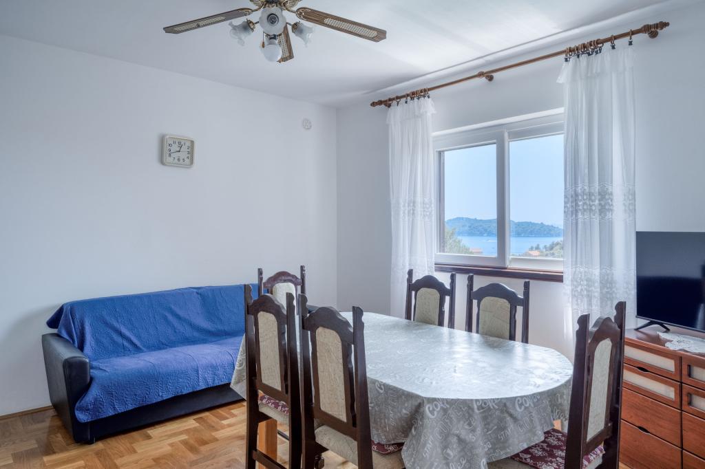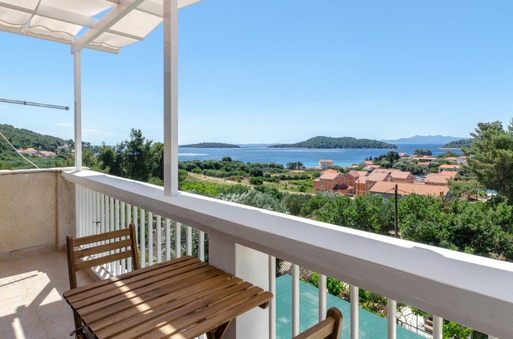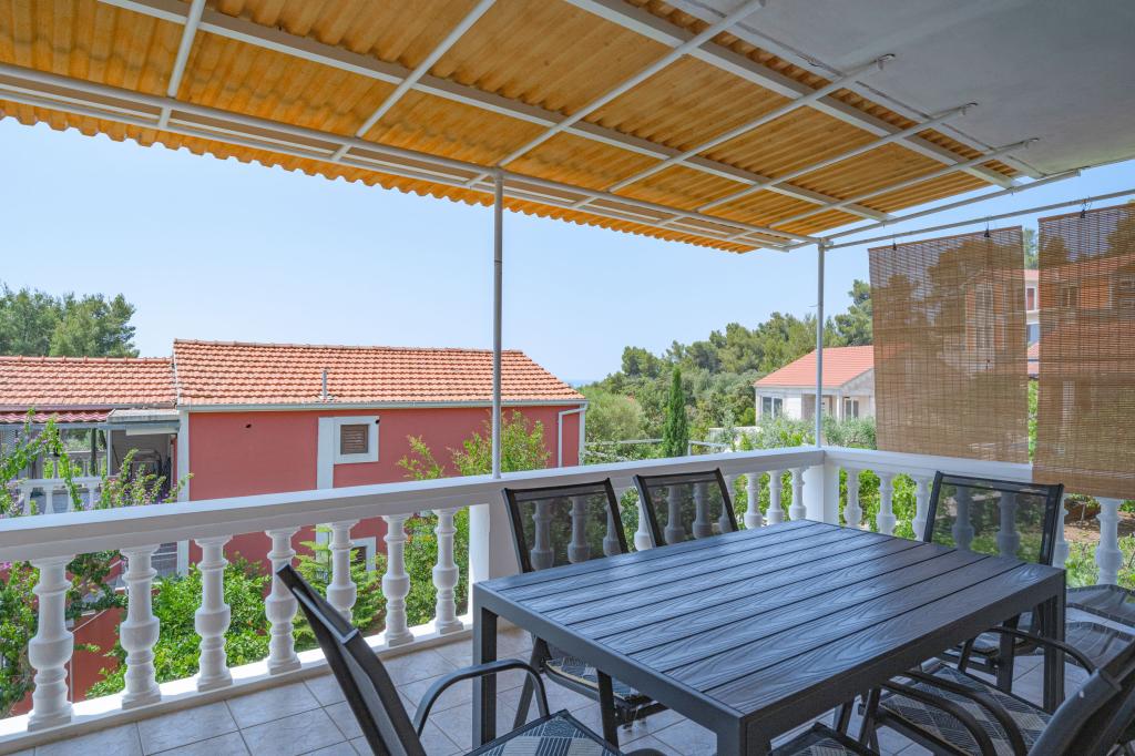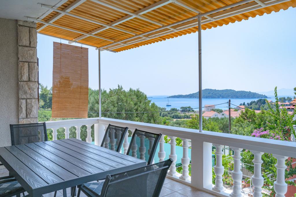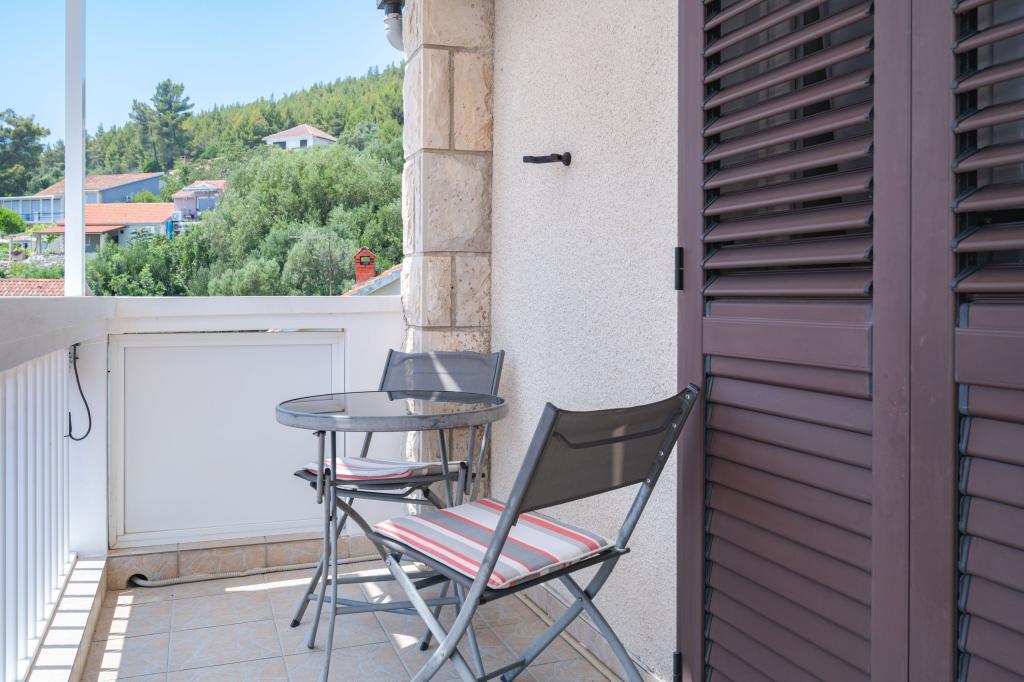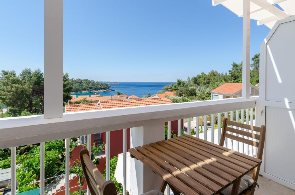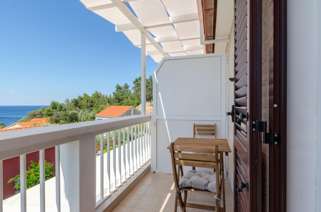 Prižba apartments Bumba are private accommodation on the island of Korčula, in the town of Prižba with 3 apartments. They are located 100 meters from the beach. Near the beach type žal. The apartments have air conditioning, internet, barbecue, parking. The balcony offers a beautiful view of the Ratak peninsula and small islands. Nearest beach (m): 100 Type of nearest beach: concrete slabs, žal Distance to the nearest pebble beach (m): 100 Town center (m): 100 Restaurant (m): 100 Shop (m): 300 Post office: Blato, 10km Ambulance: Blato, 10km Ferry port: Vela Luka, 17.5km Apartment no. 1 is a large apartment with 2 bedrooms, and air conditioners are located in each room.