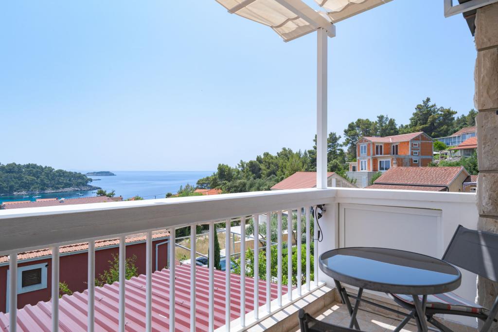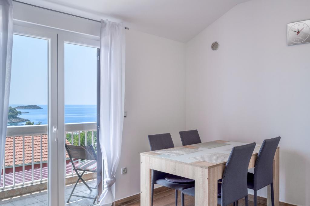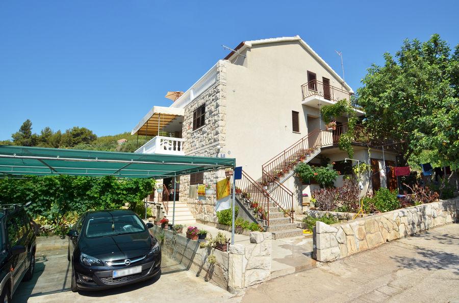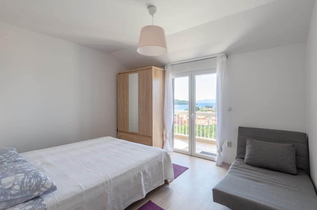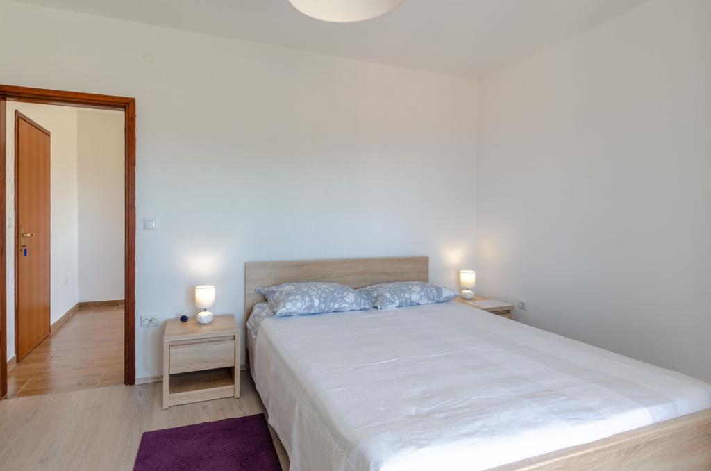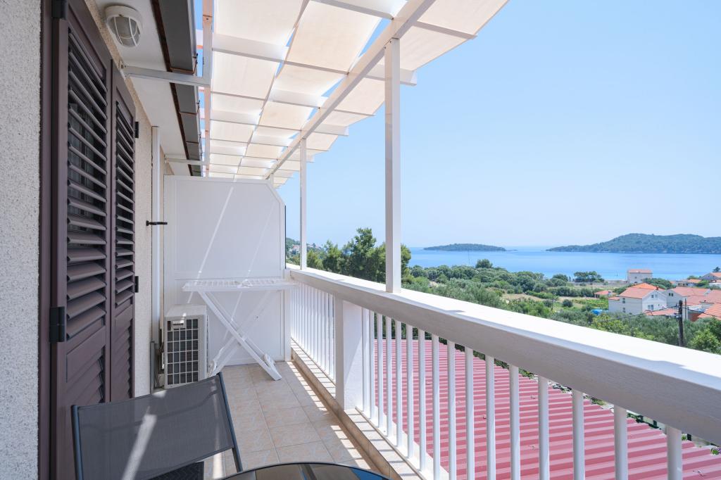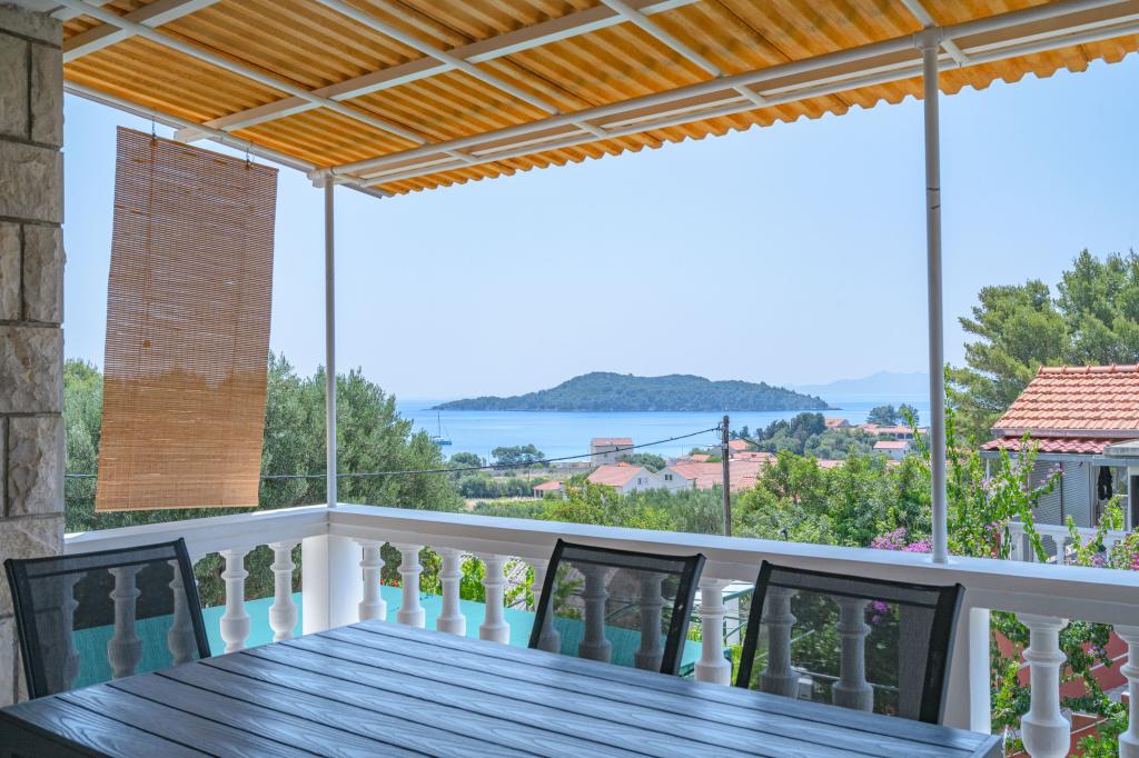Prižba apartments Bumba are private accommodation on the island of Korčula, in the town of Prižba with 3 apartments. They are located 100 meters from the beach. Near the beach type žal. The apartments have air conditioning, internet, barbecue, parking. The balcony offers a beautiful view of the Ratak peninsula and small islands. Nearest beach (m): 100 Type of nearest beach: concrete slabs, žal Distance to the nearest pebble beach (m): 100 Town center (m): 100 Restaurant (m): 100 Shop (m): 300 Post office: Blato, 10km Ambulance: Blato, 10km Ferry port: Vela Luka, 17.5km Apartment no. 1 is a large apartment with 2 bedrooms, and air conditioners are located in each room.