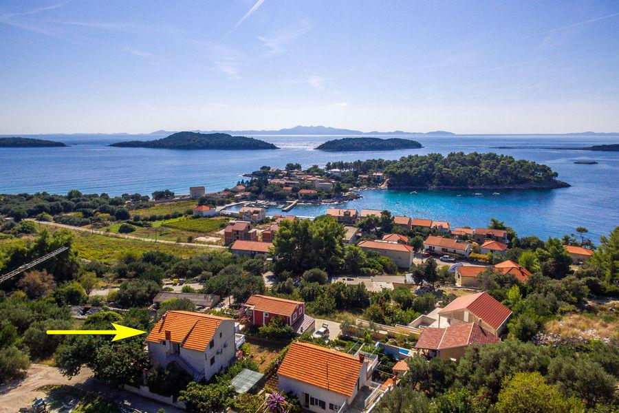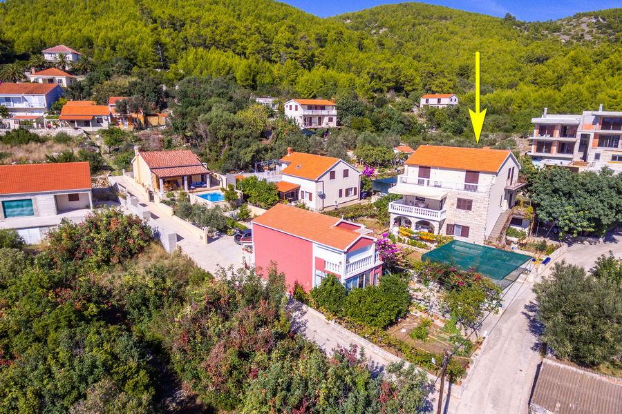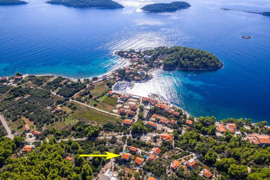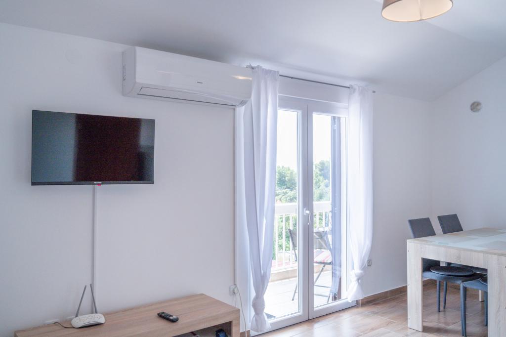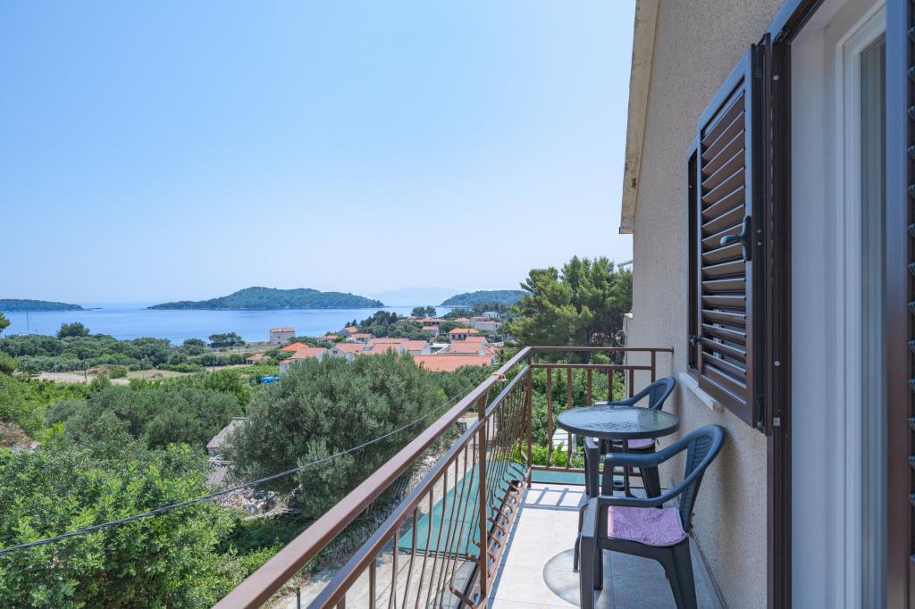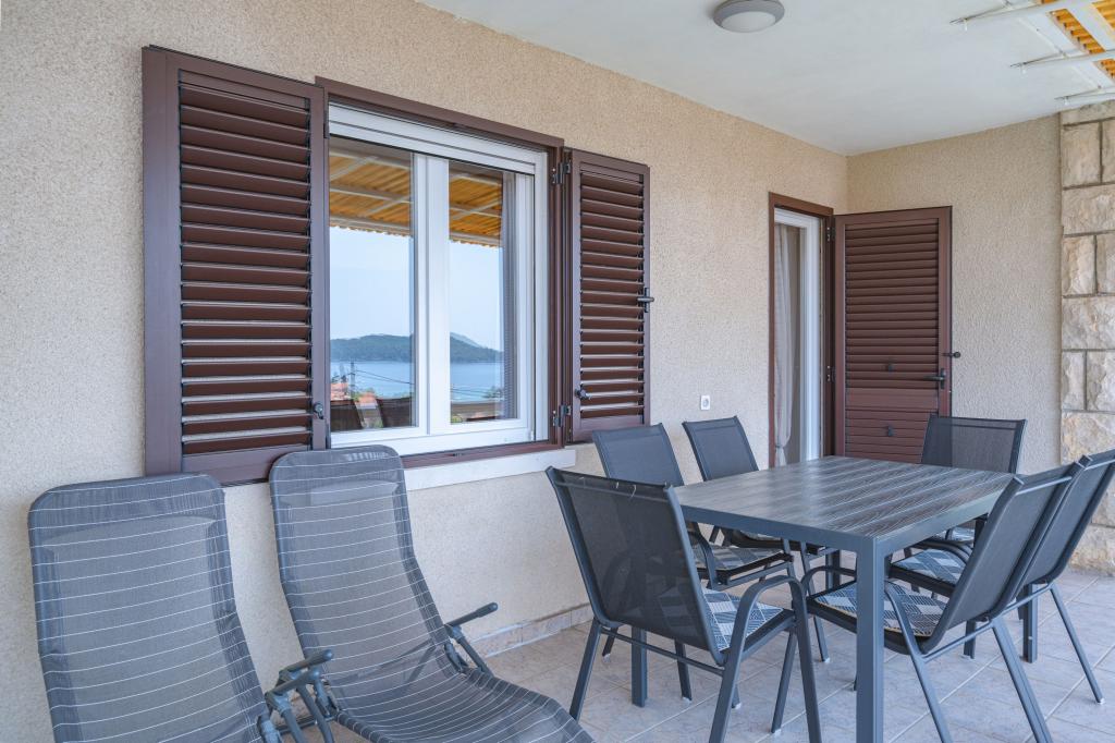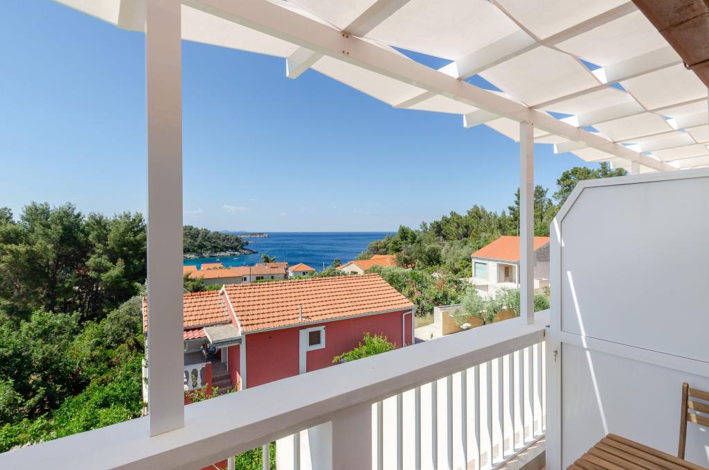 Prižba apartments Bumba are private accommodation on the island of Korčula, in the town of Prižba with 3 apartments. They are located 100 meters from the beach. Near the beach type žal. The apartments have air conditioning, internet, barbecue, parking. The balcony offers a beautiful view of the Ratak peninsula and small islands. Nearest beach (m): 100 Type of nearest beach: concrete slabs, žal Distance to the nearest pebble beach (m): 100 Town center (m): 100 Restaurant (m): 100 Shop (m): 300 Post office: Blato, 10km Ambulance: Blato, 10km Ferry port: Vela Luka, 17.5km Apartment no. 1 is a large apartment with 2 bedrooms, and air conditioners are located in each room.