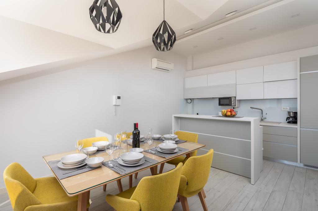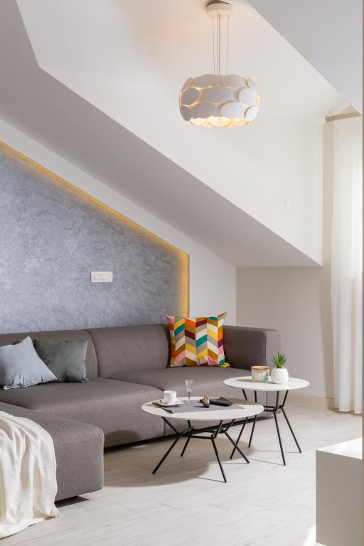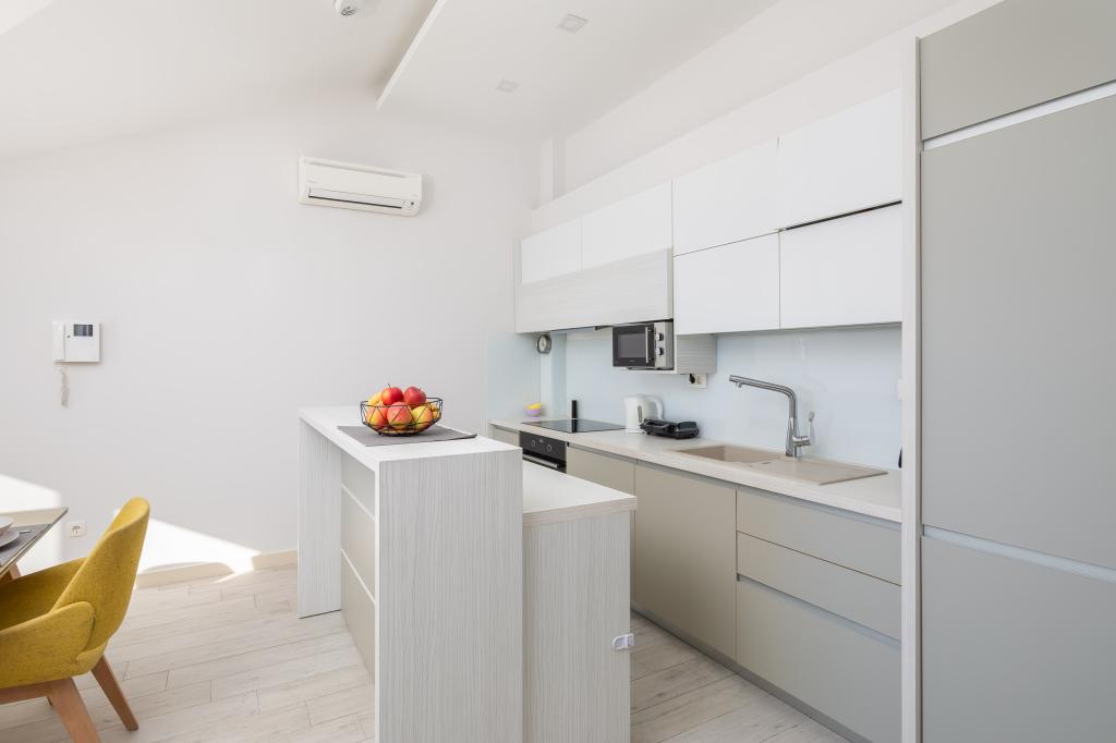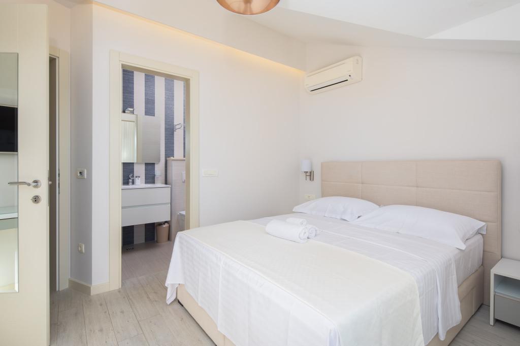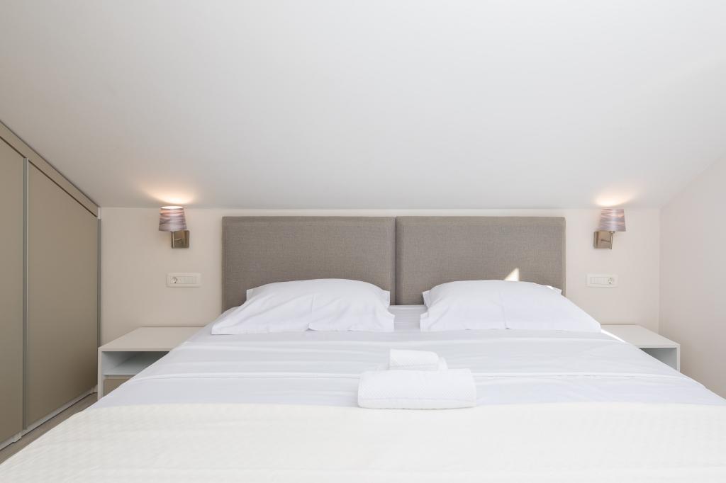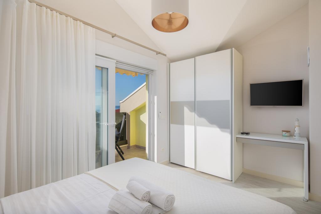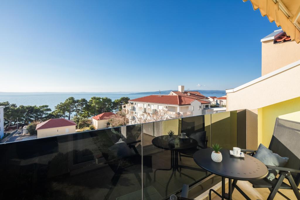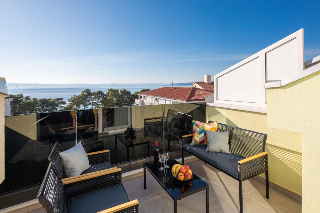 Penthouse Potter is a modern apartment with 3 bedrooms and 3 bathrooms. The spacious kitchen offers great equipment. The balcony offers a view of the sea. It is located 50m from the beach in Promajna. There are 2 parking spaces next to the building.