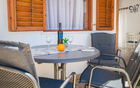 Beautifully decorated apartments 60 meters from the beach in Promajna. The house has a total of 6 apartments. All apartments are equipped with air conditioning and free Wi-Fi. In front of the house is a large yard with olive trees and parking for all our guests.