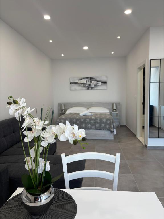 A small place on the beach, below the mountain Biokovo, ideal for a vacation. Our house is located first row to the sea, the apartments have a terrace overlooking the sea. The beach is pebbly away a few minutes from our apartments and in front of the house is a rocky beach. In front of the house are Mediterranean fruit trees, lemons, oranges, olives .... Parking is in front of our house for our guests.