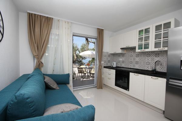 The apartment is neat, functional, aesthetically appealing, and is complemented by a beautiful terrace overlooking the sea and beautiful plants around the house. Everything you need is nearby (beach, shop, restaurant and cafe) and there is no hustle and bustle. The owners are very kind and approachable, ready to help if needed. Praise