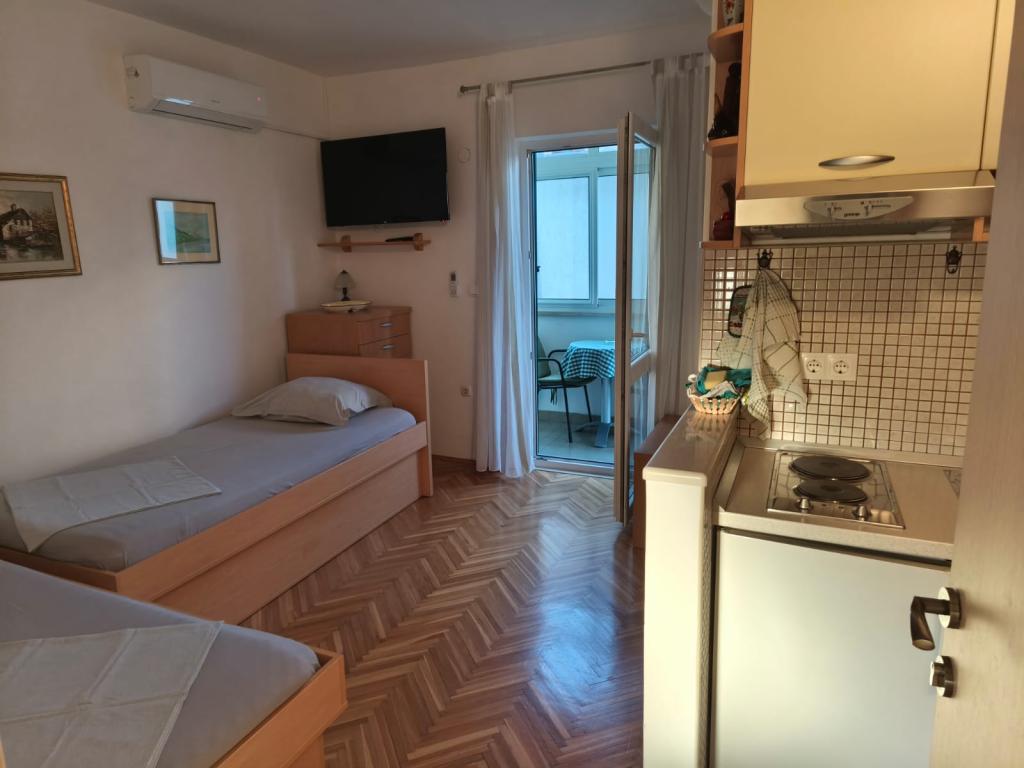 House recommendable, apartment consistent with the description and photos. Perfect location, leaving the house in front of the descent to the wide, quiet and partially shaded beach with a shower, changing room and toilet. A few steps to water attractions, all of which are in Croatia. A functional and well-equipped apartment with a spacious and comfortable bathroom, a large terrace with a beautiful sea view and comfortable furniture. A large and comfortable bed, well-functioning and quiet air conditioning, unreserved Wi-Fi, parking at the house. Edita restaurant on the ground floor serves delicious grilled calamari and more (pizza, steaks ...). Other equally delicious restaurants within a few steps. The hosts always smiling, polite and chatty, prepared a delicious dinner for us - a grilled adviser - lick your fingers! They offered to extend the stay for a few days - free - unfortunately, but we had to go home. We are very happy to come back next year. WE RECOMMEND!