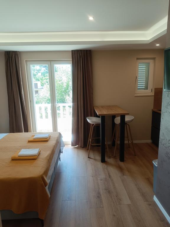 Very kind owners. The studio apartment has a beautiful location with excellent views of the sea and the Biokovo Mountains.
