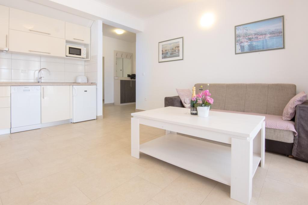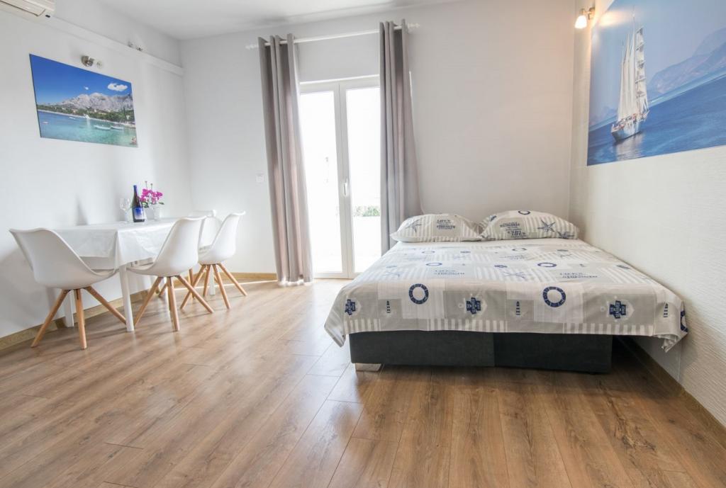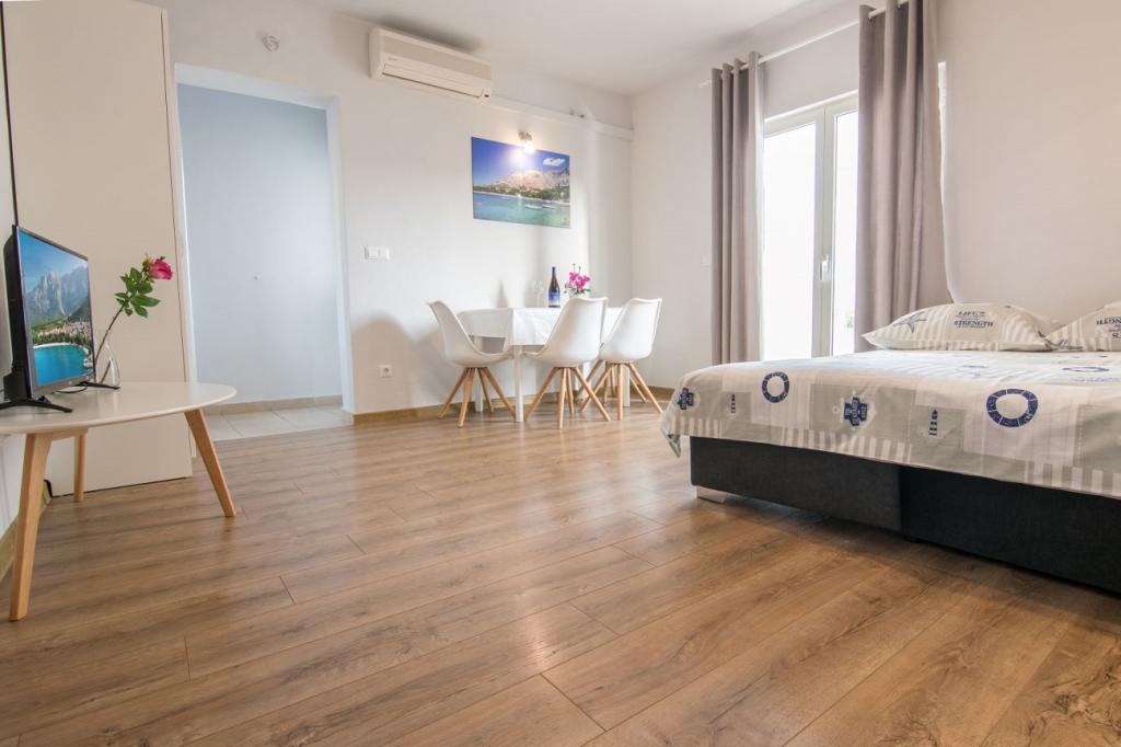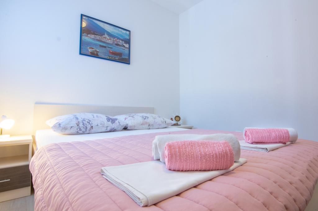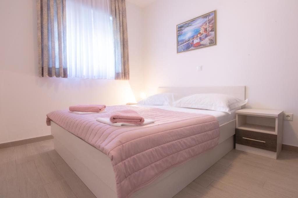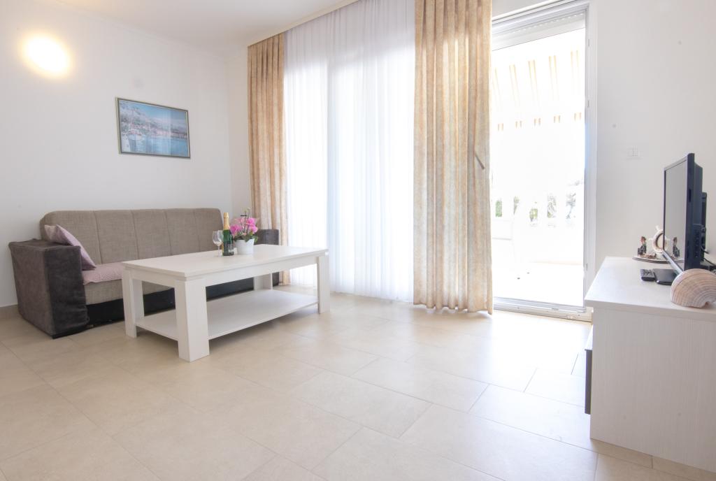 Fully equipped apartments Marinko are located in the center of Promajna, only 30m from the beach and the sea, 100 m from the shop, market and post office. The apartments have their own parking lots located next to the building. The beach has natural shade and small pebbles which is ideal for families with small children.