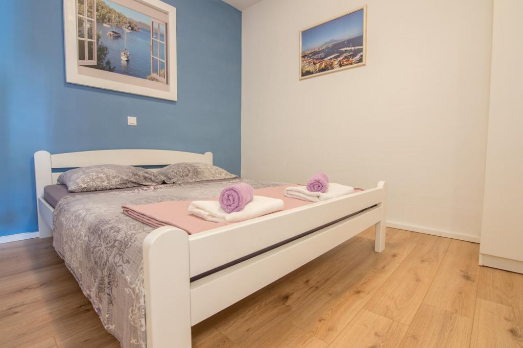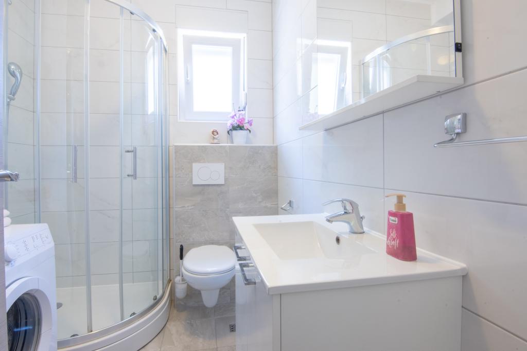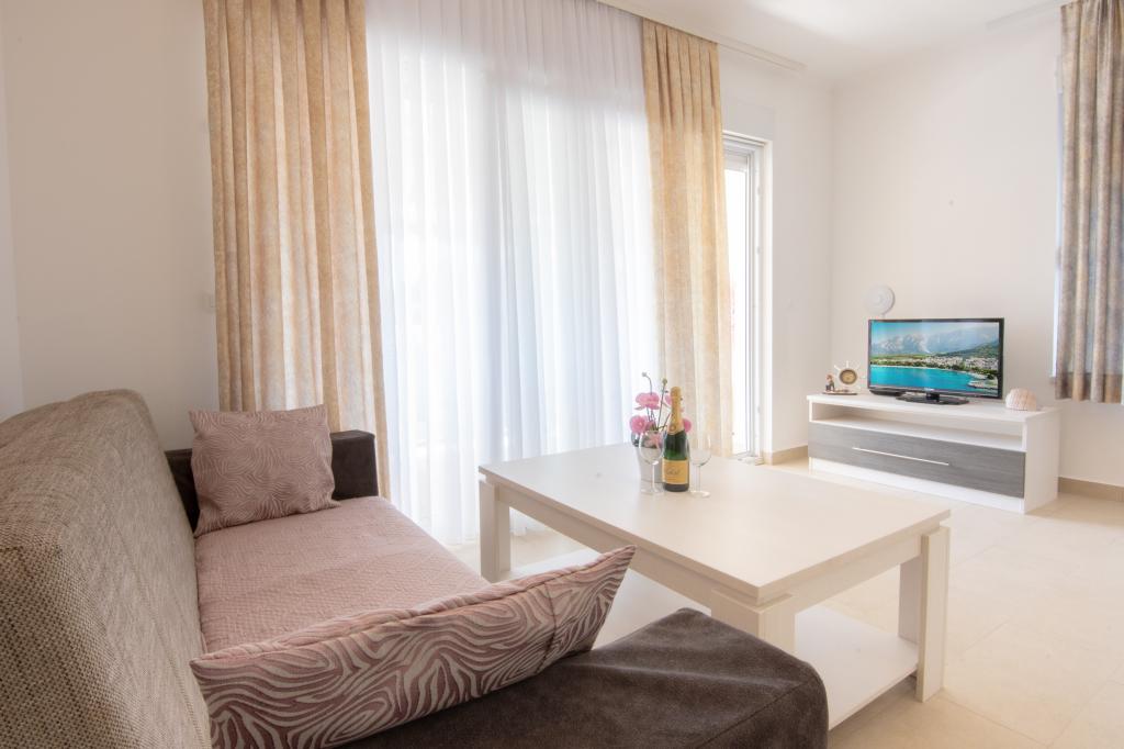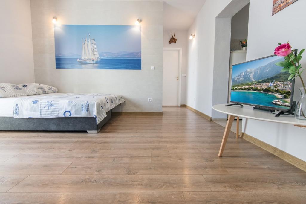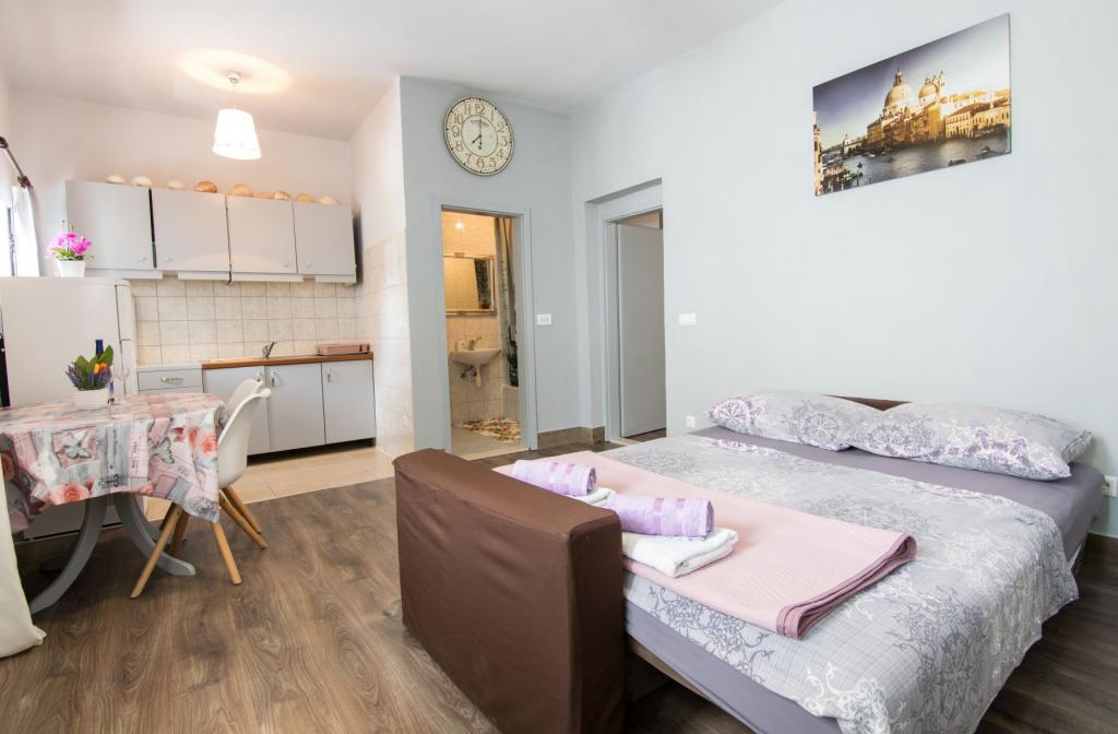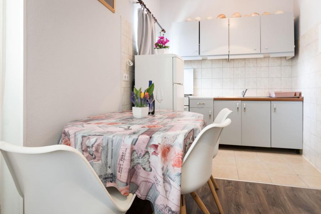 Fully equipped apartments Marinko are located in the center of Promajna, only 30m from the beach and the sea, 100 m from the shop, market and post office. The apartments have their own parking lots located next to the building. The beach has natural shade and small pebbles which is ideal for families with small children.
