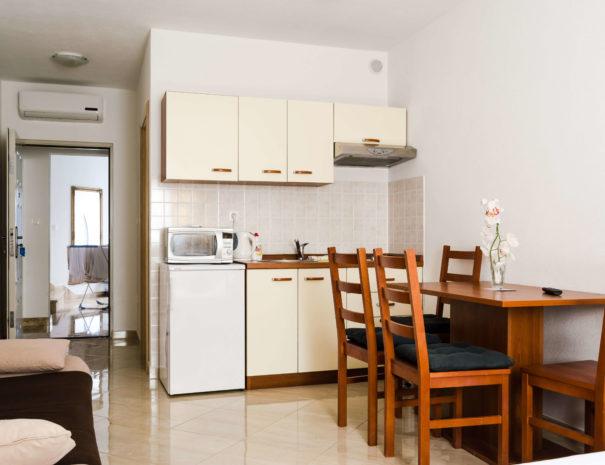 Apartmani Melanie is a complex of 9 Apartments only 100 meters from the main beach in Promajna. Each apartment is modern and clean with air conditioning, private kitchen and private bathroom. Extra outdoor cooking, dining, and parking facilities are available for all guests to use.