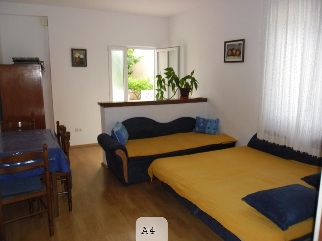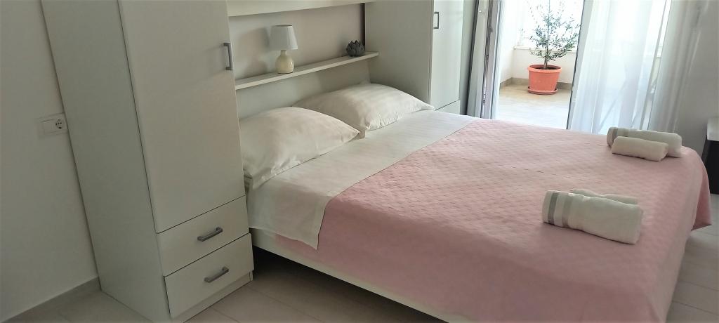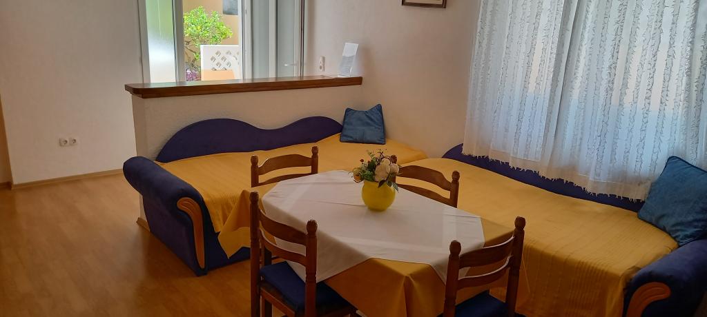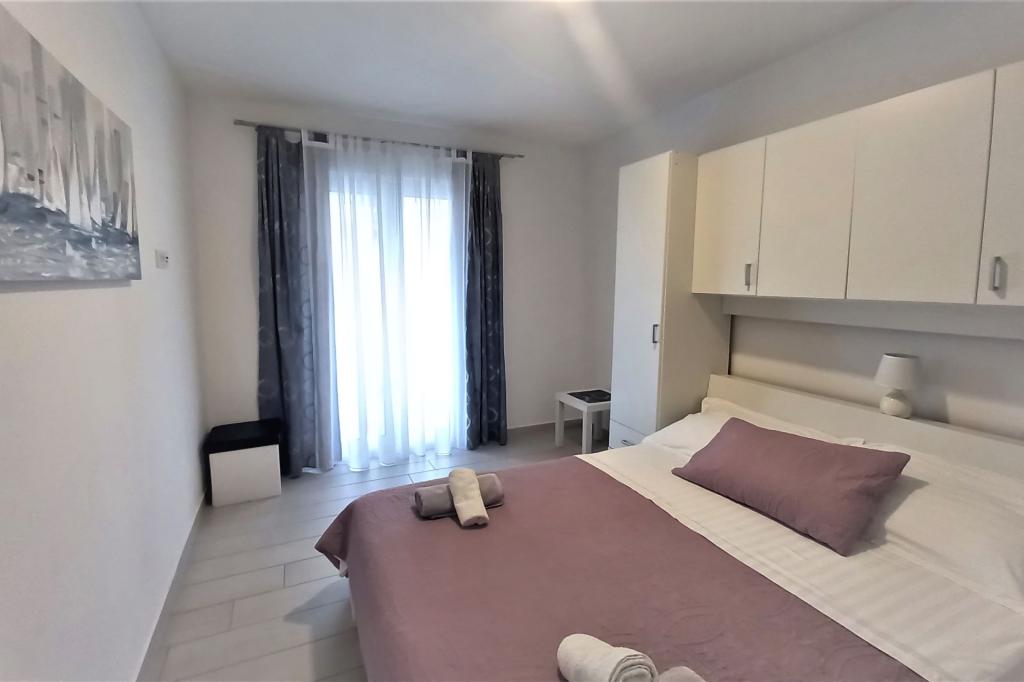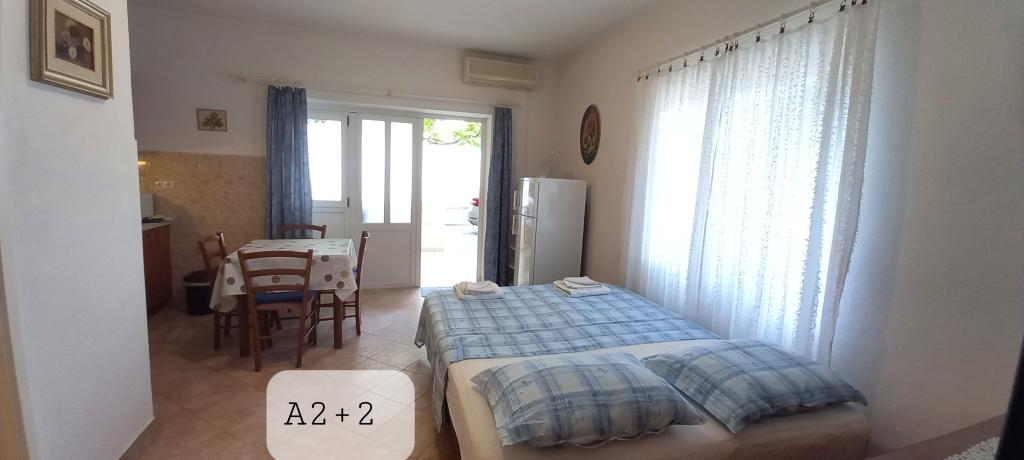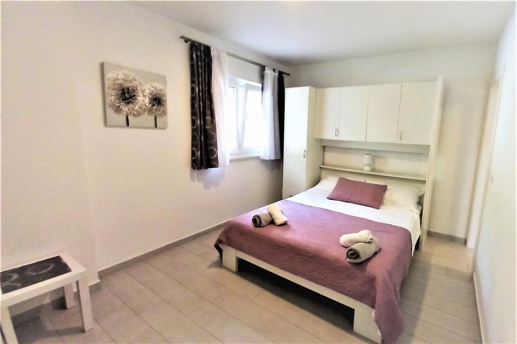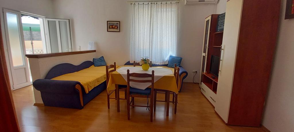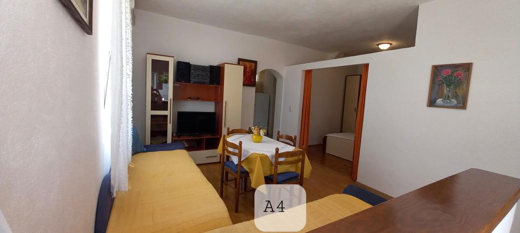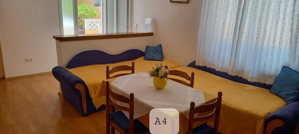 Apartments MIRA consist of 2 studio apartments (for 2-4 people) and 2 apartments (for 4-5 people). They are located on the ground floor with parking in front of the apartments. They are 250-300 m from the main beach. In addition to the standard complete equipment with air conditioning and free WiFi (optical internet access), studio apartments have a TV, microwave, washing machine and dishwasher. Studio apartments have a separate bedroom that is separated from the living room by a curtain. Apartments A4 (ID71793) 2 bedrooms, 1 bathroom + toilet. Apartment A4+1 (ID71792) has 2 bedrooms and 2 bathrooms. In addition to the standard equipment with air conditioning, they have satellite TV, free WiFi (optical internet access), microwave and washing machine. All apartments and studio apartments have free parking in front of the apartments. The price of the apartment (A4+1) is listed for 4 people and an additional person is charged an additional 10 euros.