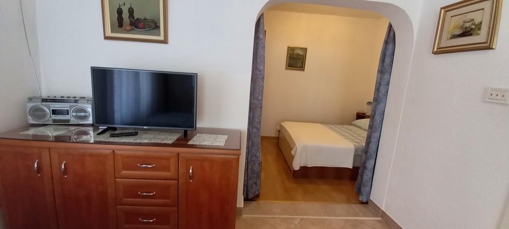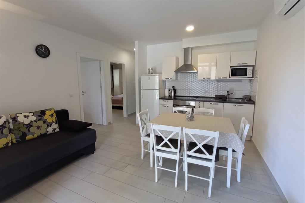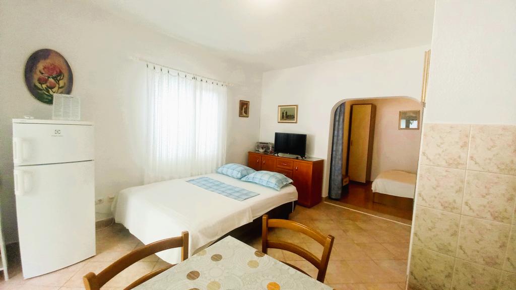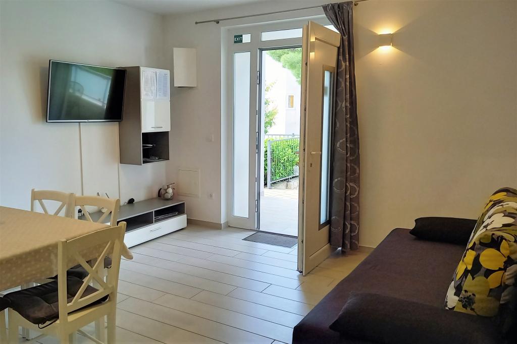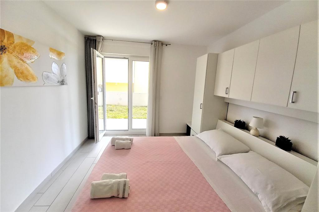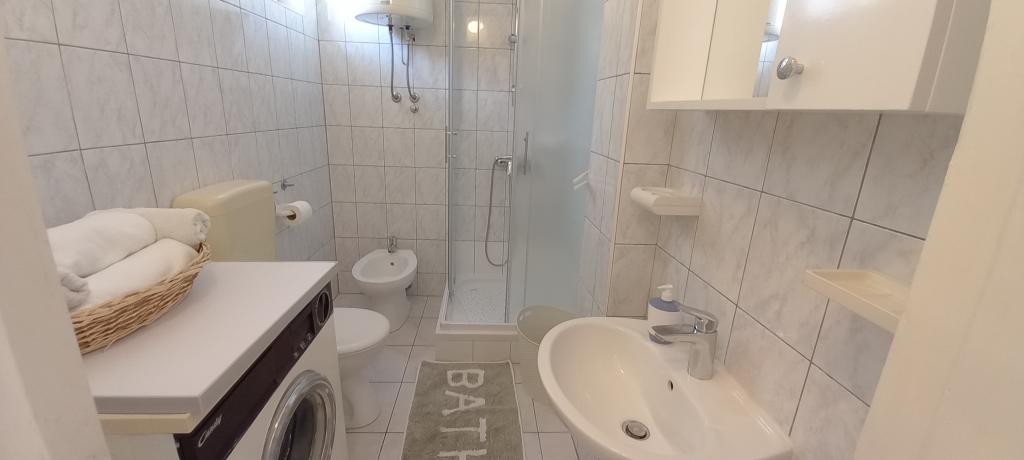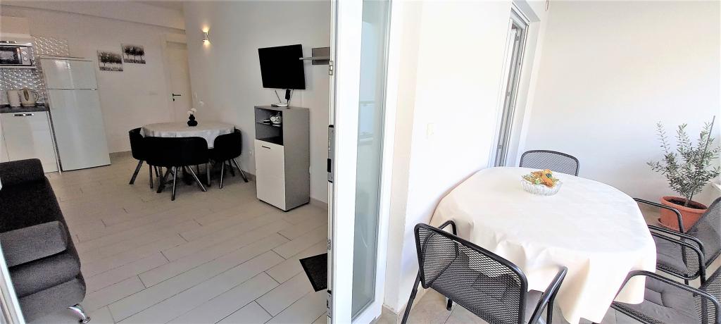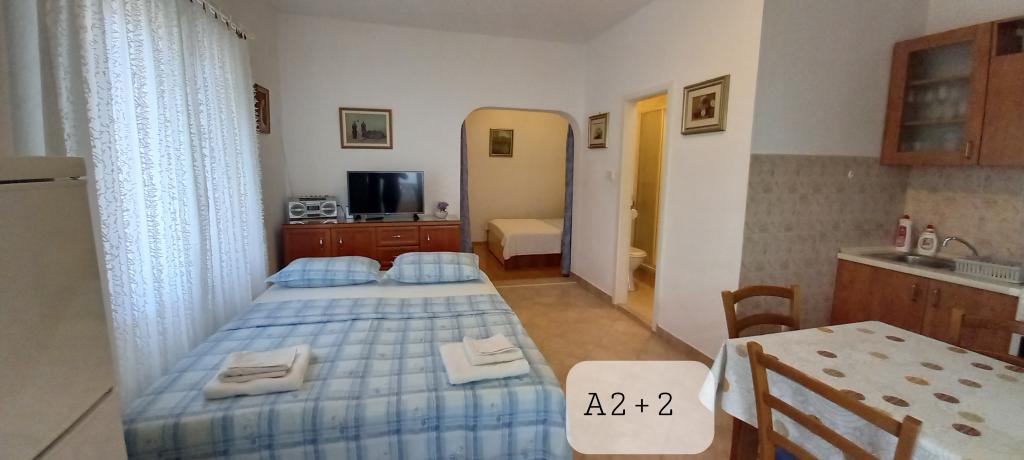 Apartments MIRA consist of 2 studio apartments (for 2-4 people) and 2 apartments (for 4-5 people). They are located on the ground floor with parking in front of the apartments. They are 250-300 m from the main beach. In addition to the standard complete equipment with air conditioning and free WiFi (optical internet access), studio apartments have a TV, microwave, washing machine and dishwasher. Studio apartments have a separate bedroom that is separated from the living room by a curtain. Apartments A4 (ID71793) 2 bedrooms, 1 bathroom + toilet. Apartment A4+1 (ID71792) has 2 bedrooms and 2 bathrooms. In addition to the standard equipment with air conditioning, they have satellite TV, free WiFi (optical internet access), microwave and washing machine. All apartments and studio apartments have free parking in front of the apartments. The price of the apartment (A4+1) is listed for 4 people and an additional person is charged an additional 10 euros.
