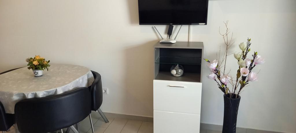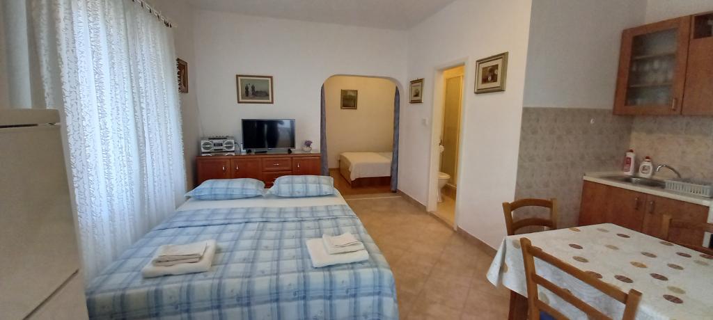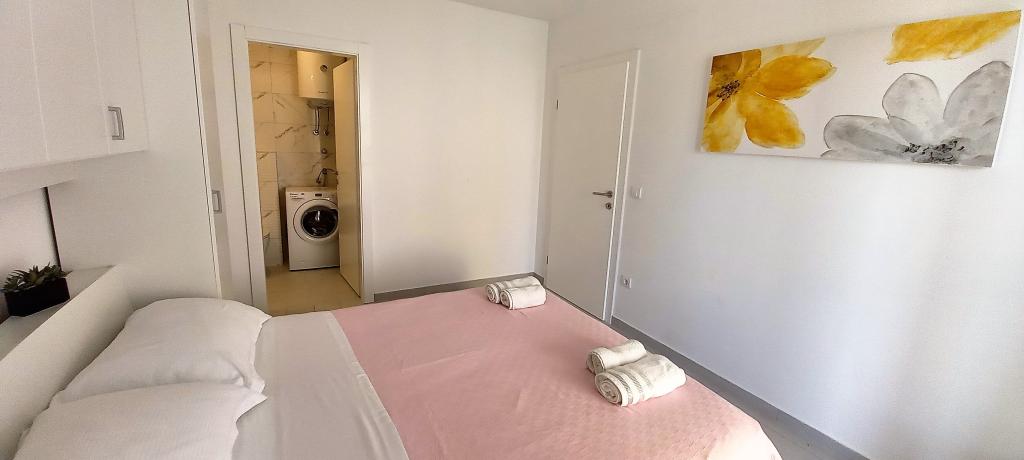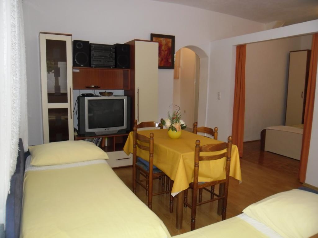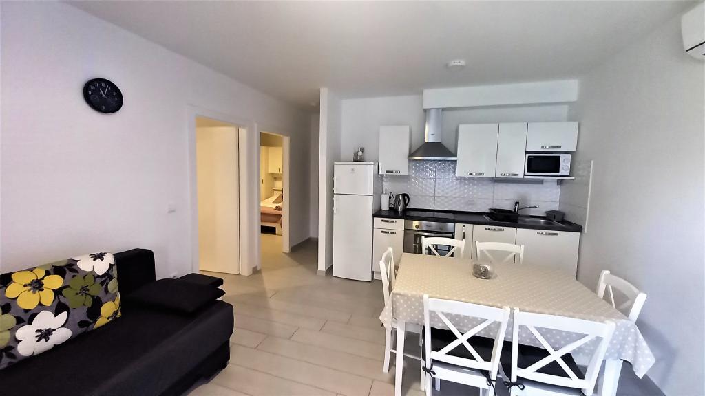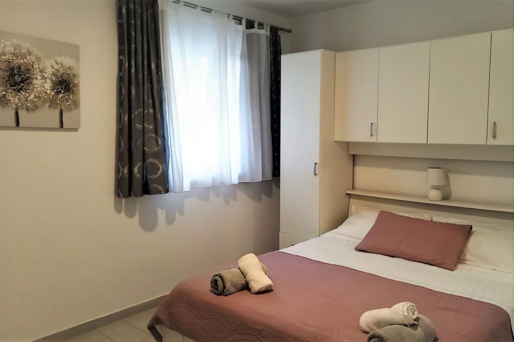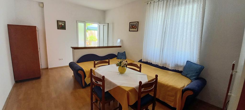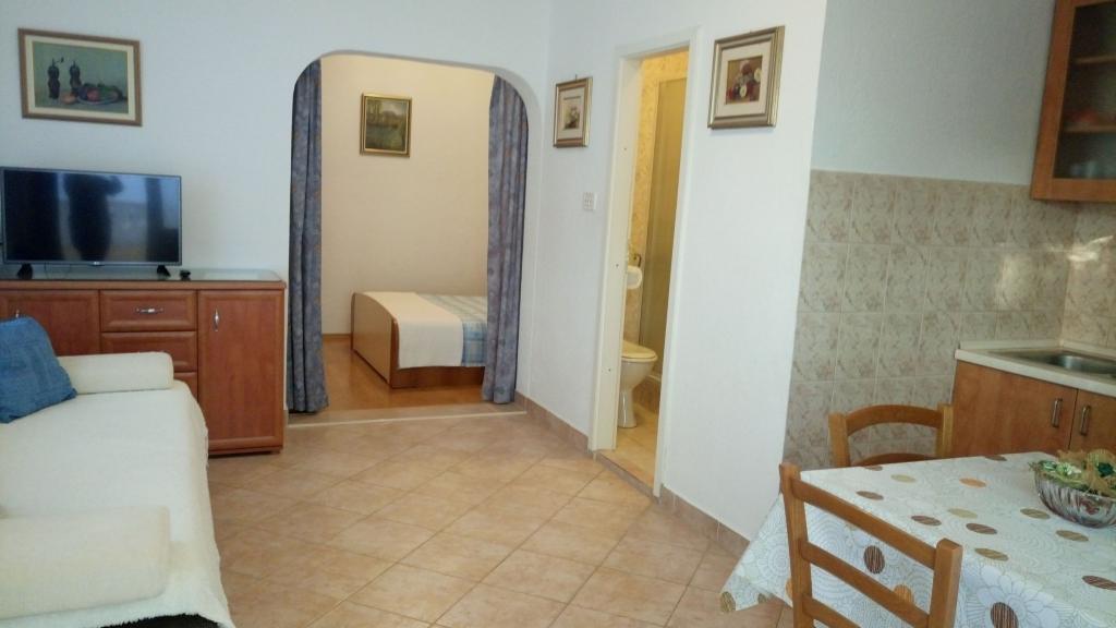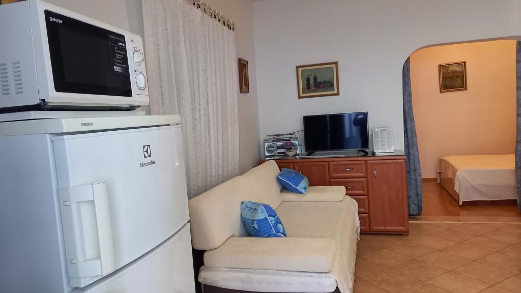 Apartments MIRA consist of 2 studio apartments (for 2-4 people) and 2 apartments (for 4-5 people). They are located on the ground floor with parking in front of the apartments. They are 250-300 m from the main beach. In addition to the standard complete equipment with air conditioning and free WiFi (optical internet access), studio apartments have a TV, microwave, washing machine and dishwasher. Studio apartments have a separate bedroom that is separated from the living room by a curtain. Apartments A4 (ID71793) 2 bedrooms, 1 bathroom + toilet. Apartment A4+1 (ID71792) has 2 bedrooms and 2 bathrooms. In addition to the standard equipment with air conditioning, they have satellite TV, free WiFi (optical internet access), microwave and washing machine. All apartments and studio apartments have free parking in front of the apartments. The price of the apartment (A4+1) is listed for 4 people and an additional person is charged an additional 10 euros.