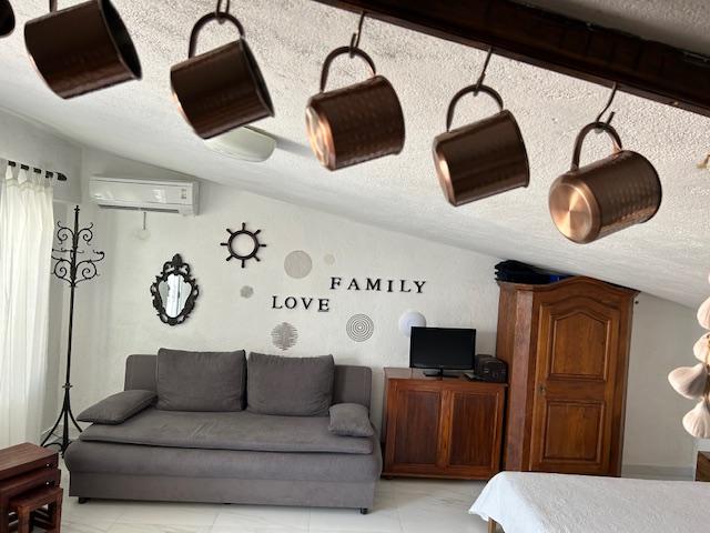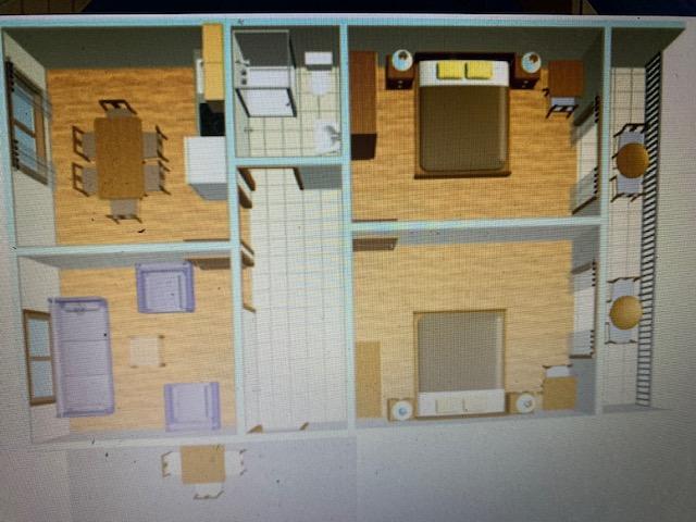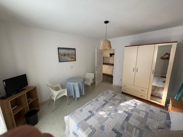It's a waste of money and time on a wasted vacation. Apartment A5 is old, with cracks, holes in the doorframes, and bugs crawling out. After an intervention, we received insect repellent! The terraces are walk-through, with neighbors' windows outside. The beds and bedding are old. The bathroom has a shower curtain, so everything gets wet when you wash. The kitchen has no space to do anything; when you cut bread on the table, everything falls. The small room has one TV (8 channels), dust in the cabinets, and smelly carpets from the 1990s. The air conditioning works, but the air flow is poor. When you leave and try to close the door, water drips onto your head. Parking is 200 meters from the house. The house is located on a hill, so it's a struggle to get there.