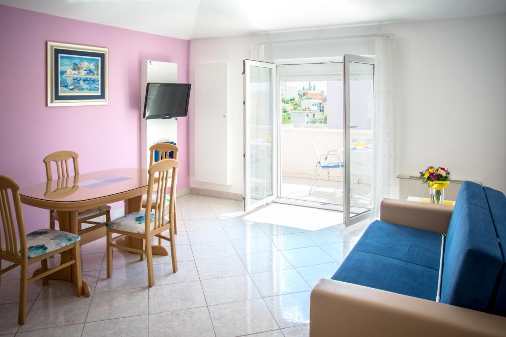 Apartment: large, clean, tidy, everything you need in it, large balcony, swimming pool great for children. Location: the beach and everything else nearby, we didn't even need a car during our stay, everything is within walking distance. And above all, the owners are kind and kind, everything that was agreed in advance was done as it was, without any unpleasant surprises, kudos. A pleasant and beautiful holiday, perfect.