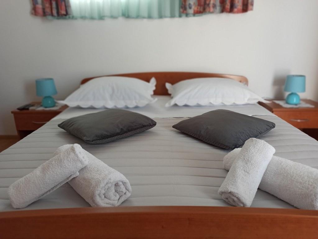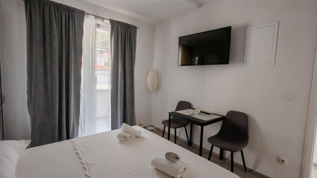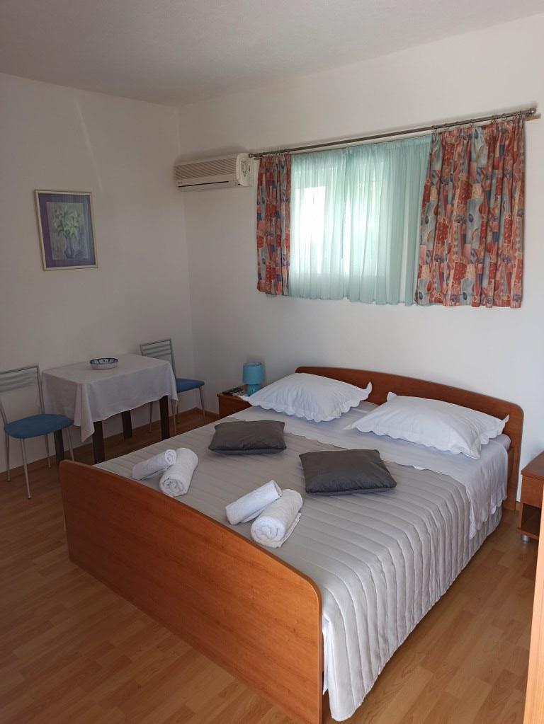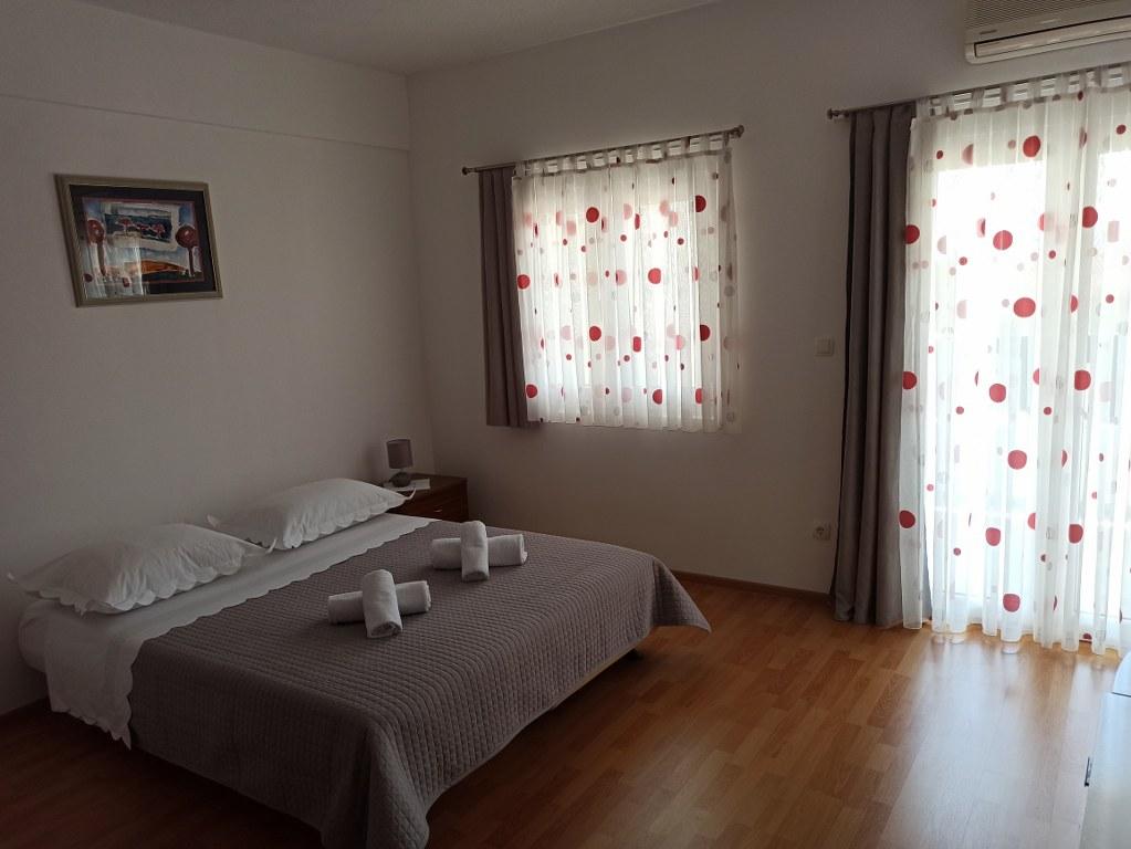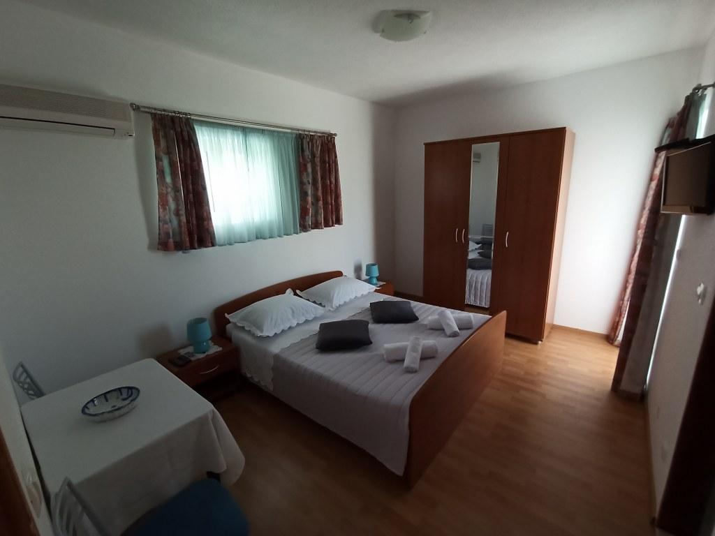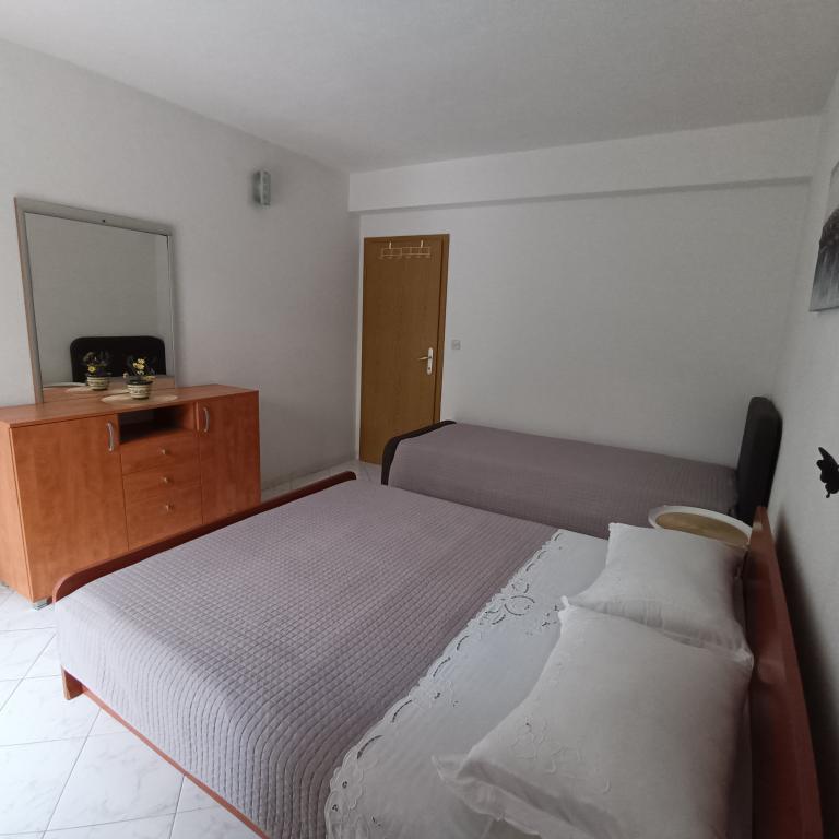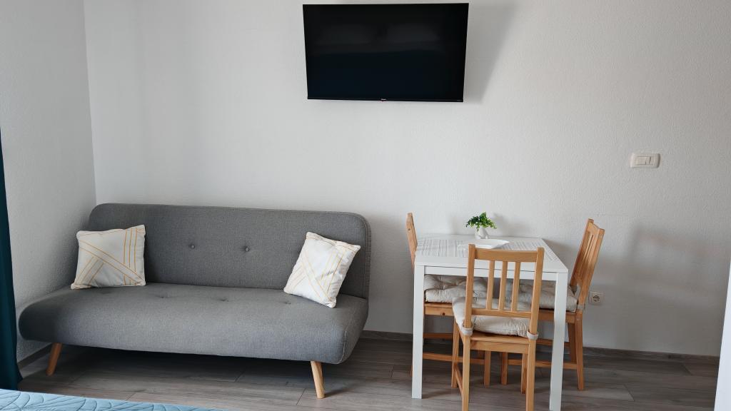 We stayed in a double room with a bathroom, a fully equipped kitchen and a balcony with a side view of both the sea and the mountains. The room was very clean and tidy, without any complaints. The owner was available on site, very communicative and helpful not only in matters of accommodation but also advised where to eat well and cheaply, where to buy the best home-made olive oil, etc. Next year we will definitely come back, this time with friends.