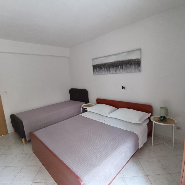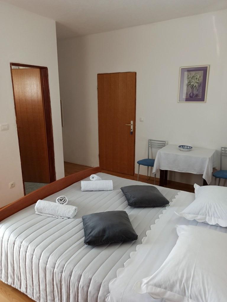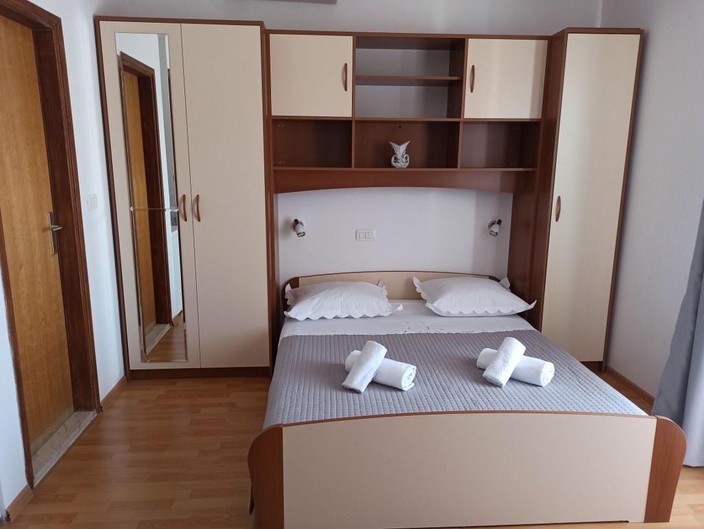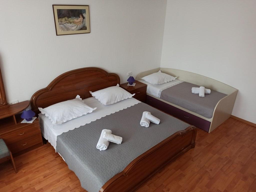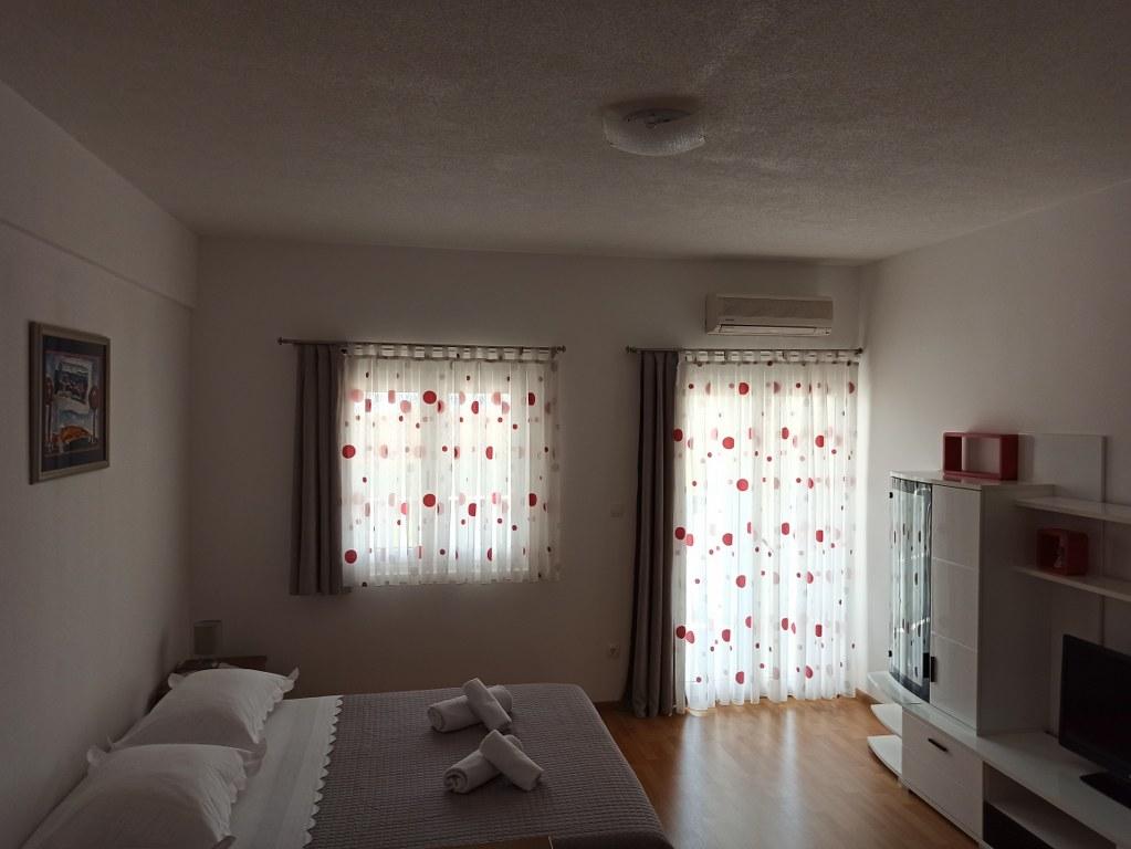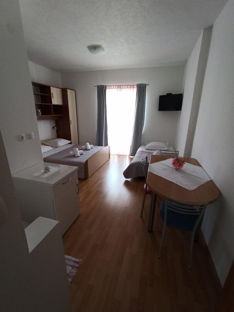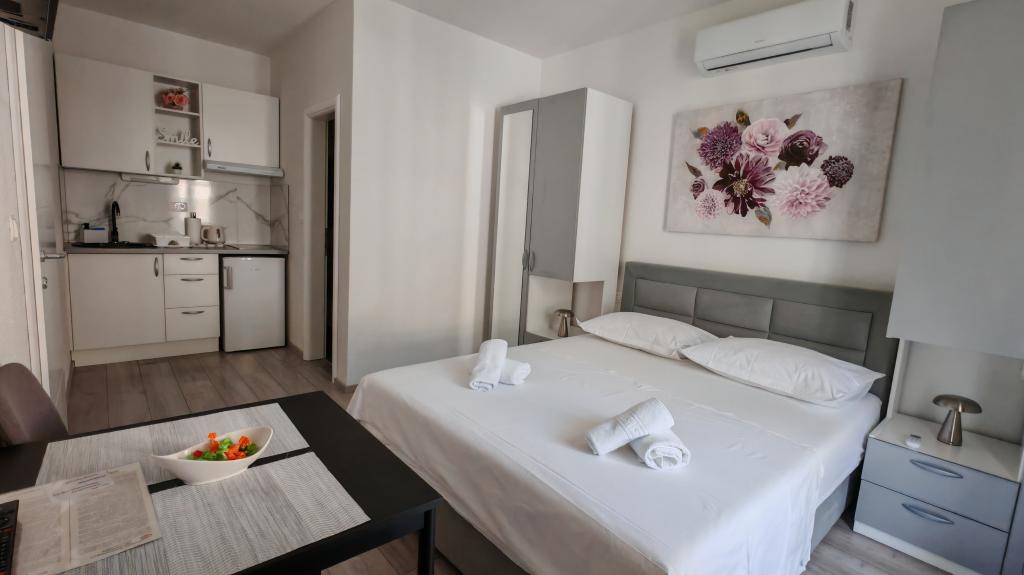 We stayed in a double room with a bathroom, a fully equipped kitchen and a balcony with a side view of both the sea and the mountains. The room was very clean and tidy, without any complaints. The owner was available on site, very communicative and helpful not only in matters of accommodation but also advised where to eat well and cheaply, where to buy the best home-made olive oil, etc. Next year we will definitely come back, this time with friends.