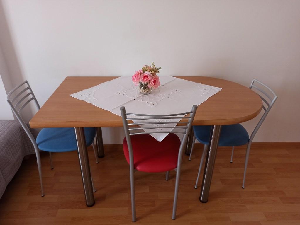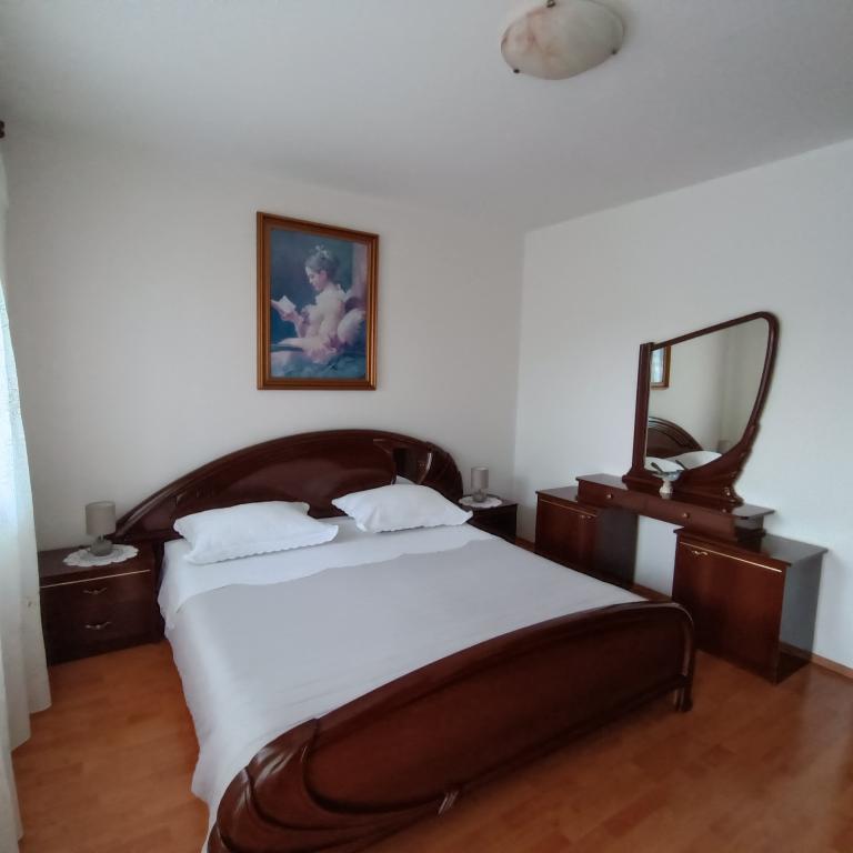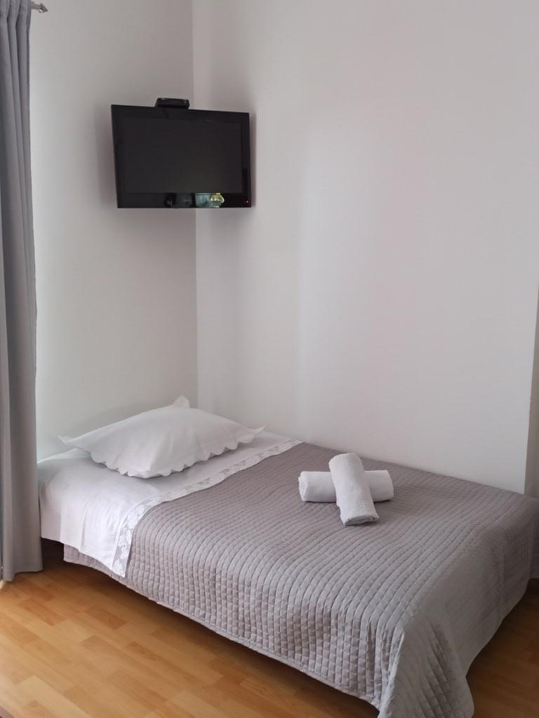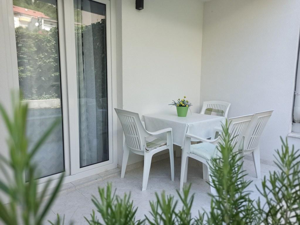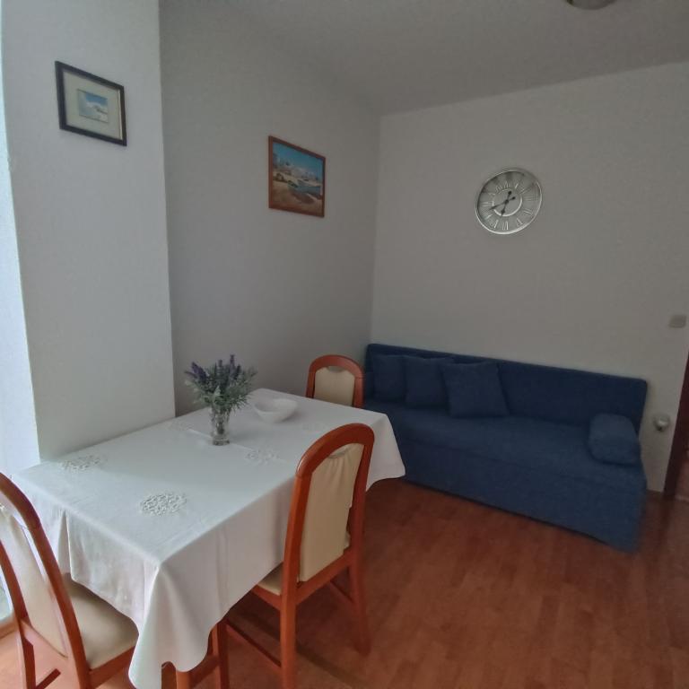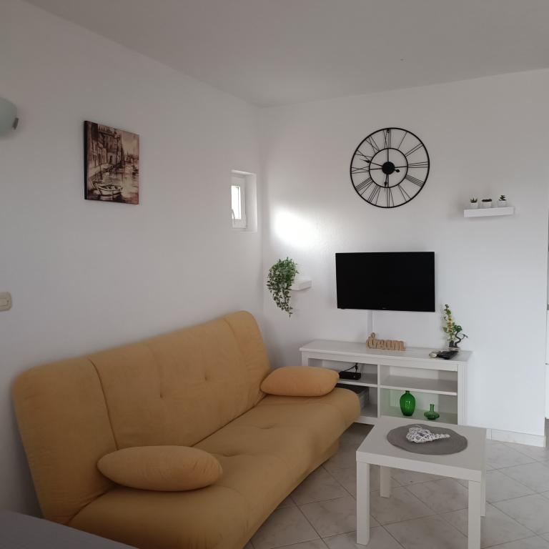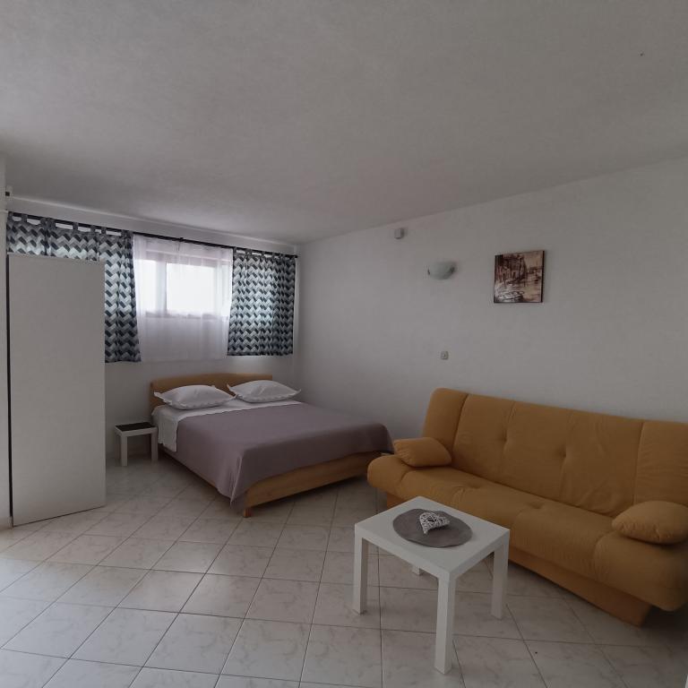 We stayed in a double room with a bathroom, a fully equipped kitchen and a balcony with a side view of both the sea and the mountains. The room was very clean and tidy, without any complaints. The owner was available on site, very communicative and helpful not only in matters of accommodation but also advised where to eat well and cheaply, where to buy the best home-made olive oil, etc. Next year we will definitely come back, this time with friends.